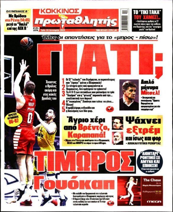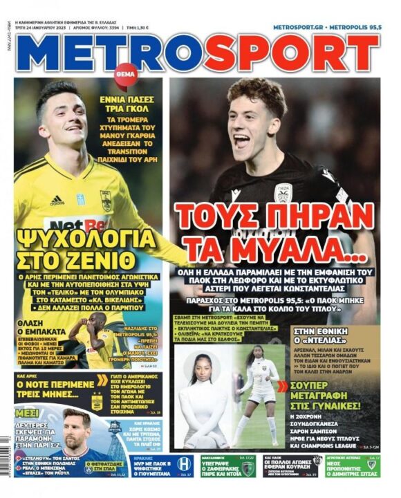 Τα αθλητικά πρωτοσέλιδα της ημέρας(24/01)