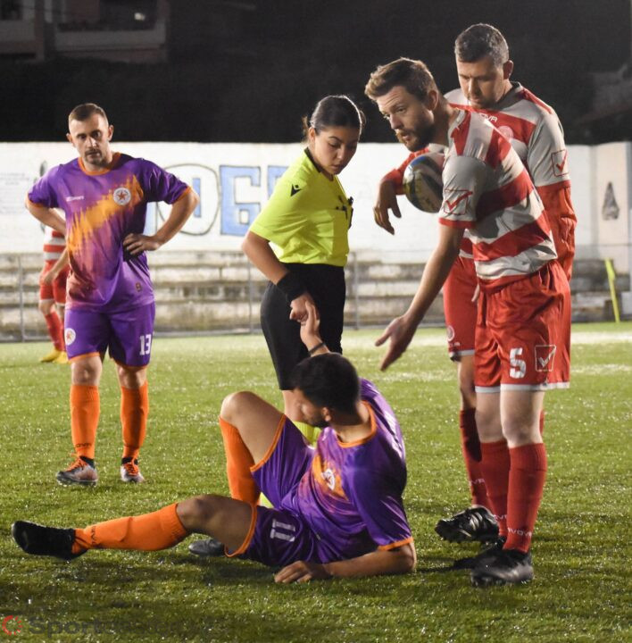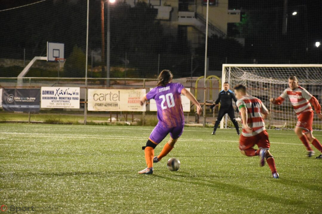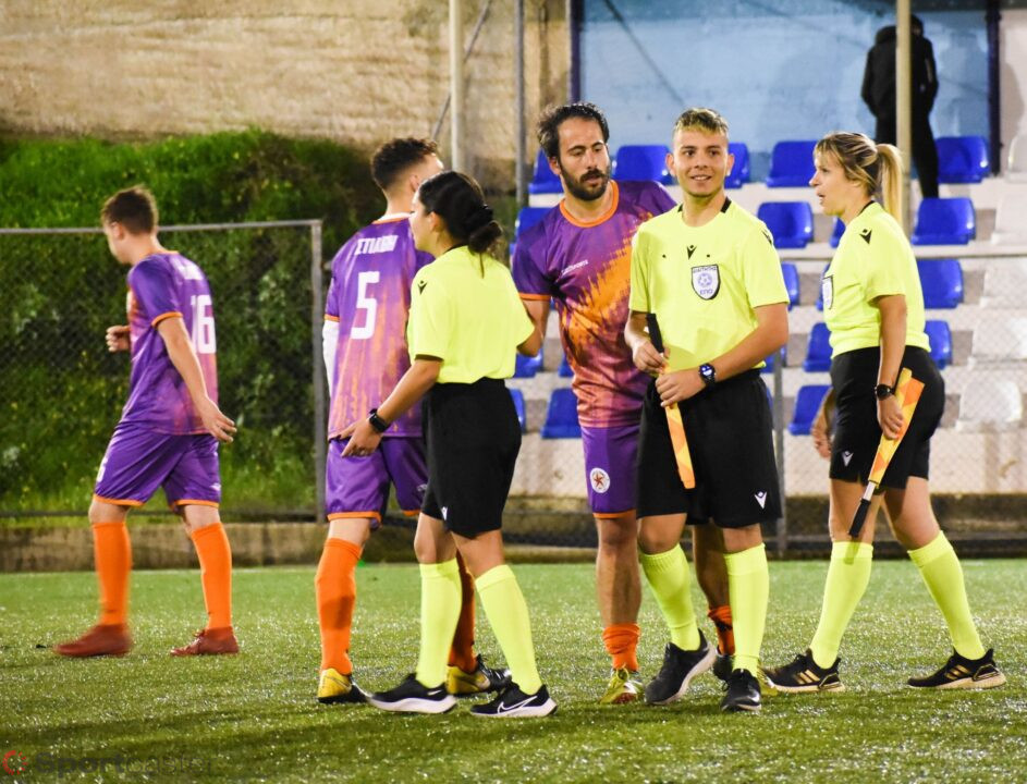Ένα ωραίο στιγμιότυπο, με την Ξενάκη να βοηθά τον ποδοσφαιριστή της Στίλβης που βρίσκεται στο έδαφος για να σηκωθεί
