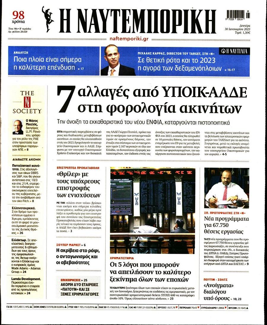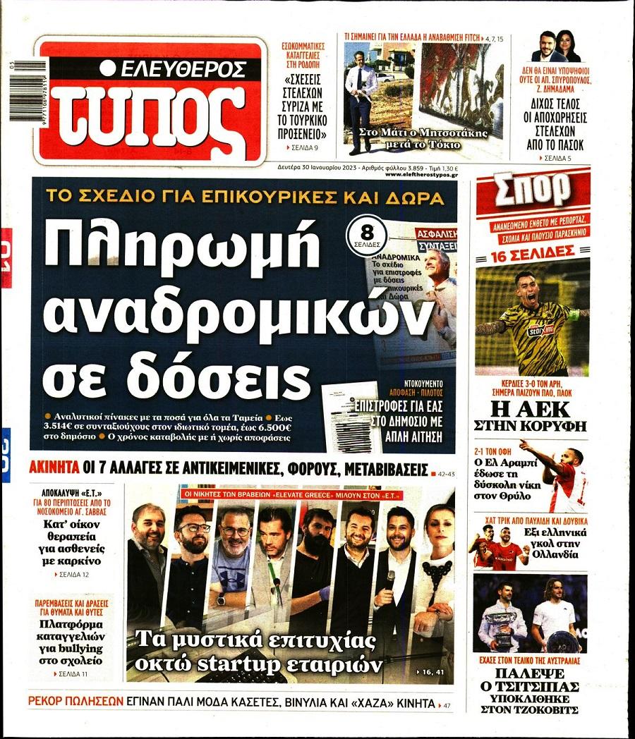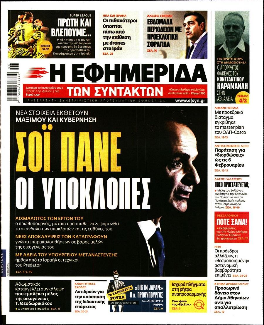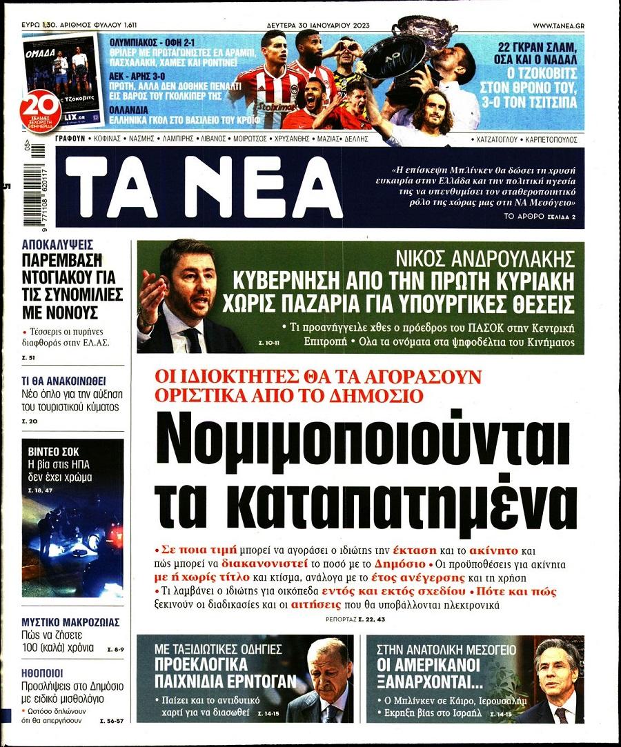 Τα πολιτικά πρωτοσέλιδα της ημέρας(30/01)