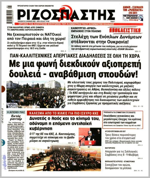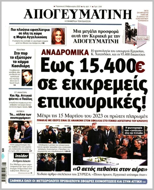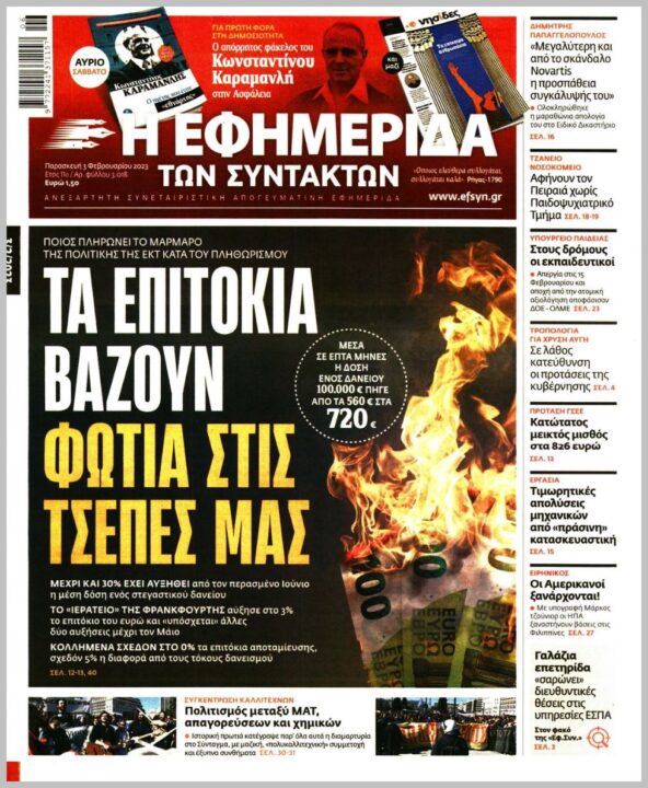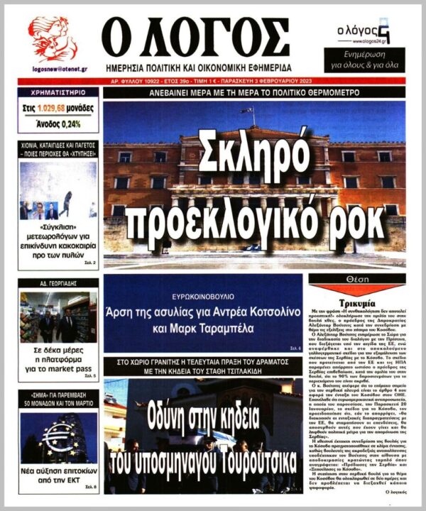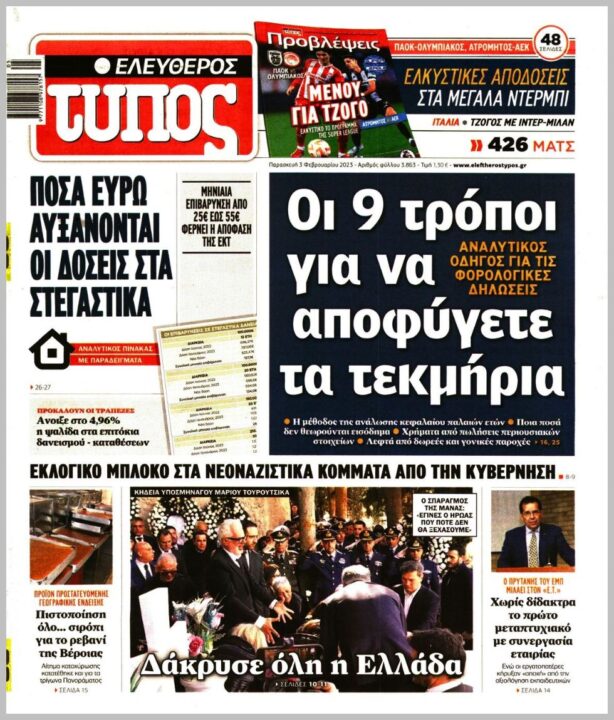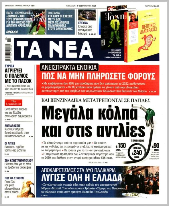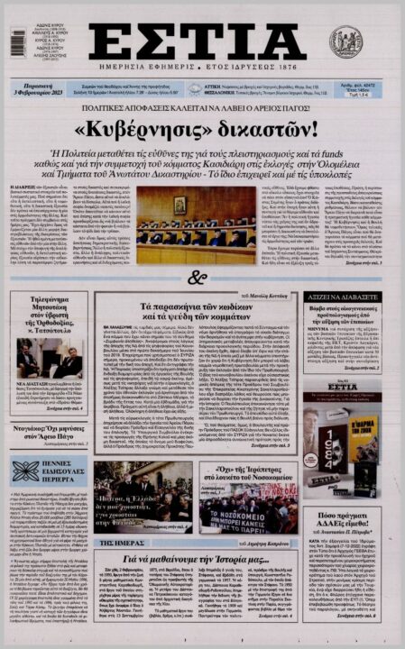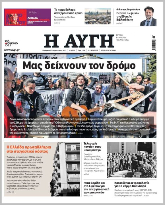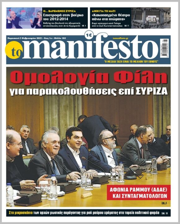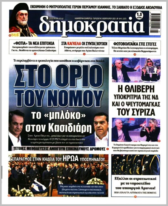 Τα πρωτοσέλιδα των πολιτικών εφημερίδων της Παρασκευής (3/2)