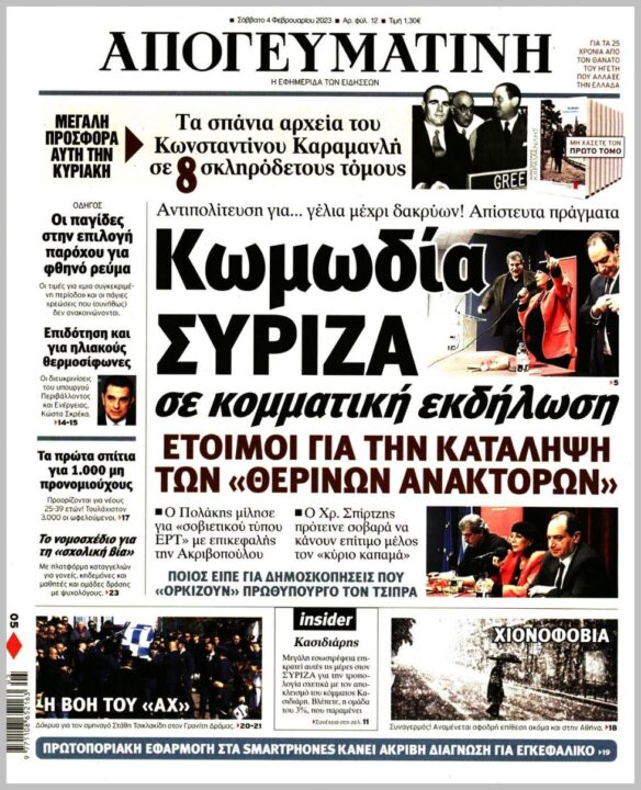 Γενικά Τα πολιτικά πρωτοσέλιδα της ημέρας(04/02) Published Πριν 3 έτη on 4 Φεβρουαρίου 2023 By Xristos Δείτε τι αναφέρουν τα πρωτοσέλιδα των πολιτικών εφημερίδων Σχετικά θέματα:ΠΟΛΙΤΙΚΑ ΠΡΩΤΟΣΕΛΙΔΑ Δείτε Επίσης LiveΠριν 2 εβδομάδες Live: Ηρακλής Νεροκούρου – Άμιλλα 0-0 | Τελικό LiveΠριν 7 ημέρες Live: Ο αγώνας Τάλως – Θησέας LiveΠριν 2 εβδομάδες Live: Οι αγώνες σε Γ’ Εθνική, Α’ και Β’ ΕΠΣΧ LiveΠριν 3 εβδομάδες Live: Ο αγώνας Ήφαιστος – Παγχανιακός/ΑΟΔΑ LiveΠριν 2 ημέρες Live: Ο αγώνες Αστέρας Χαλέπας – Ποσειδώνας LiveΠριν 6 ημέρες Live: Οι αγώνες της Β’ ΕΠΣΧ