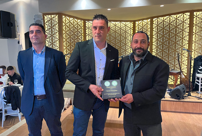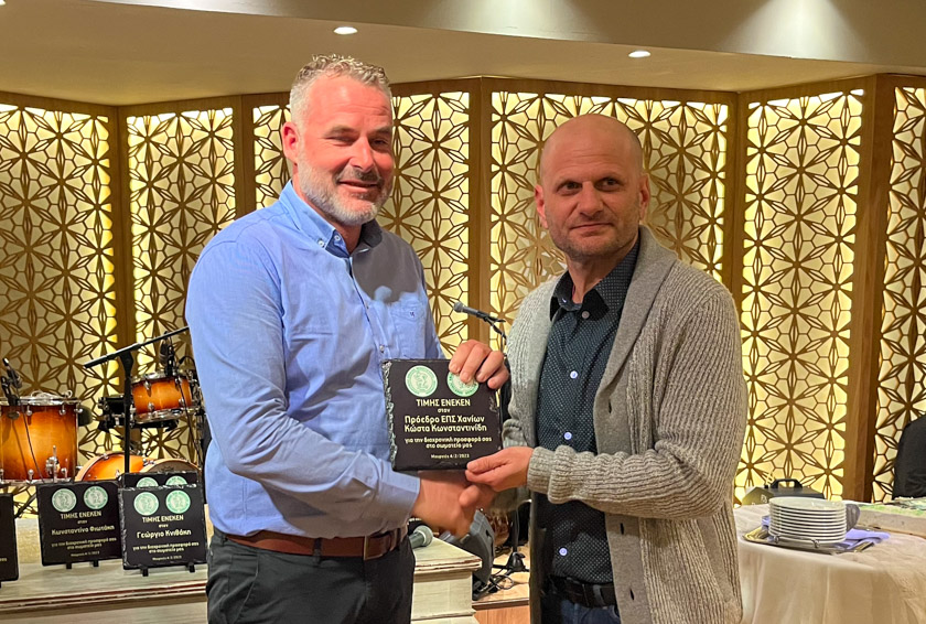 • Ο περιφερειάρχης Κρήτης, Σταύρος Αρναουτάκης για την καθοριστική του βοήθεια στην αναβάθμιση του γηπέδου μας στις Μουρνιές, το βραβείο του οποίου παρέλαβε ο αντιπεριφερειάρχης Τουρισμού, Κυριάκος Κώτσογλου.