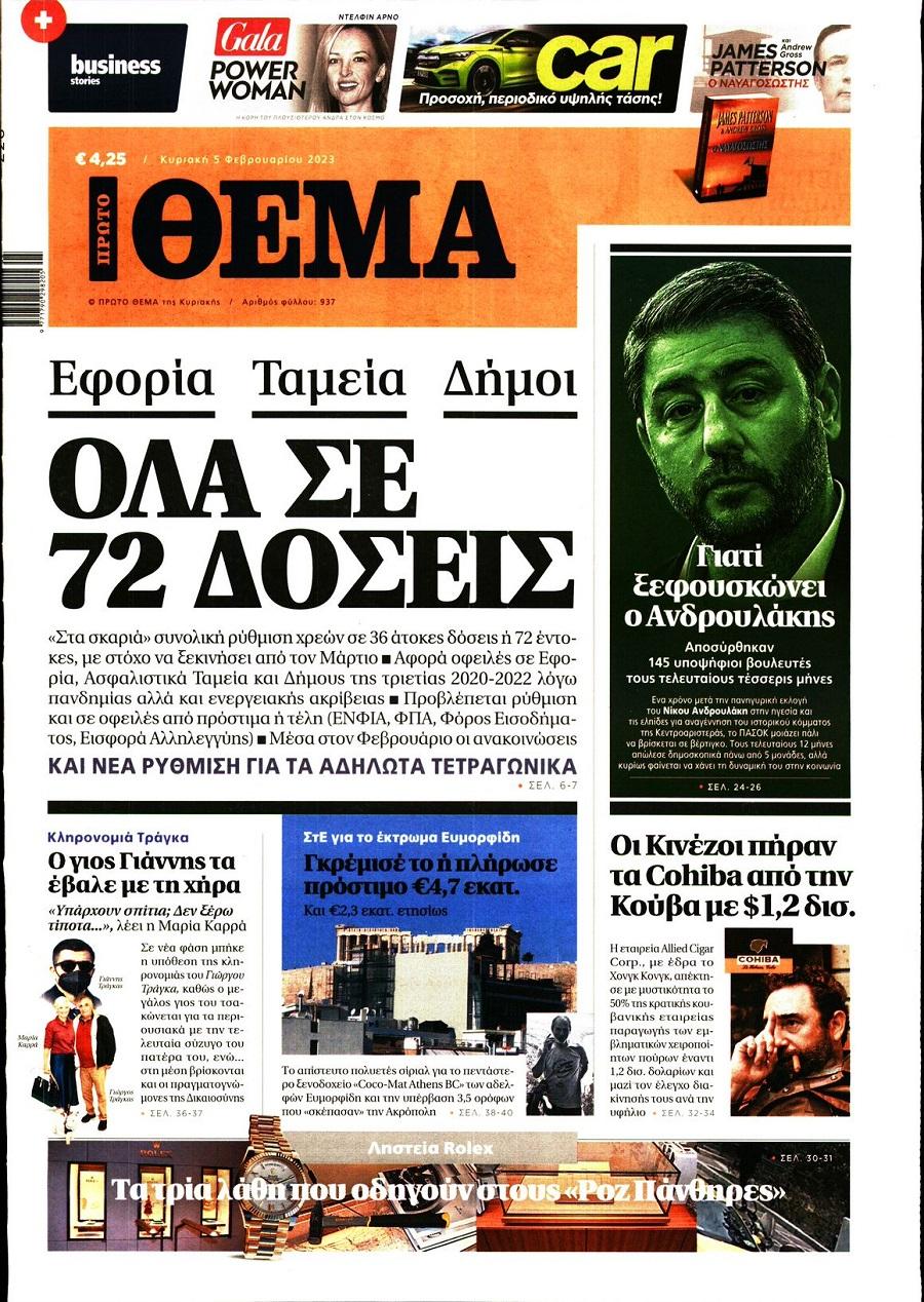 Τα πολιτικά πρωτοσέλιδα της ημέρας(05/02)