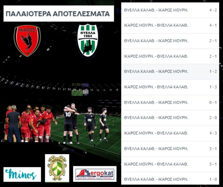 Εντυπωσιακές αναμετρήσεις χαρίζουν τα τελευταία χρόνια Ίκαρος Μουρνιών και Θύελλα Καλαθενών καθώς η προϊστορία των δύο ομάδων βρίσκεται σε απόλυτη ισορροπία – Καμία ισοπαλία τα τελευταία χρόνια, τα πολλά γκολ και ο Μαργαριτάκης που “σεληνιάζεται”.
