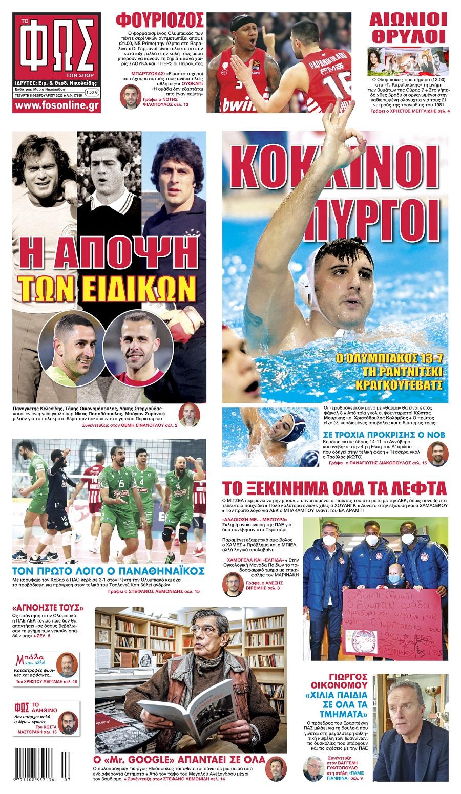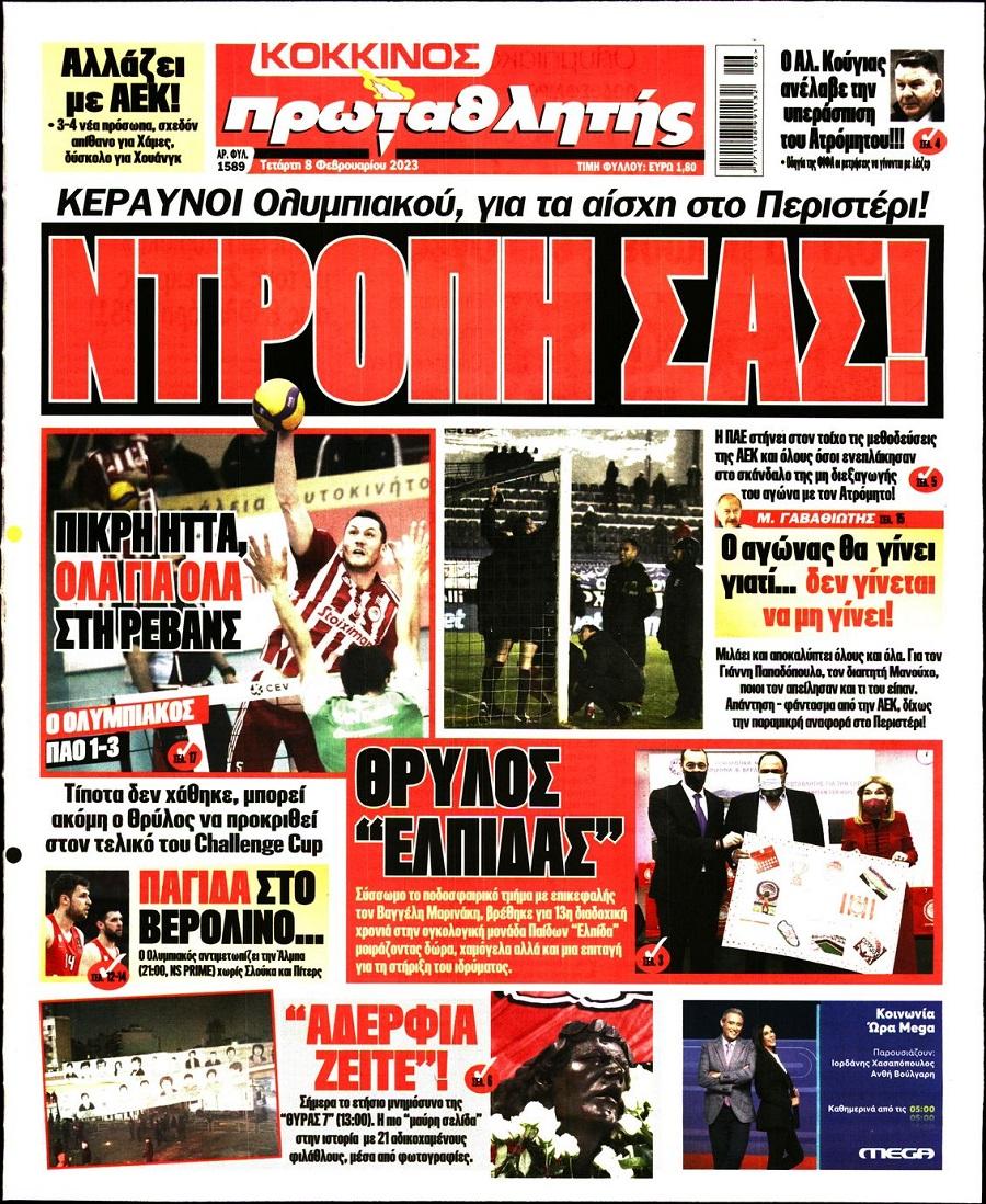 Τα αθλητικά πρωτοσέλιδα της ημέρας(08/02)