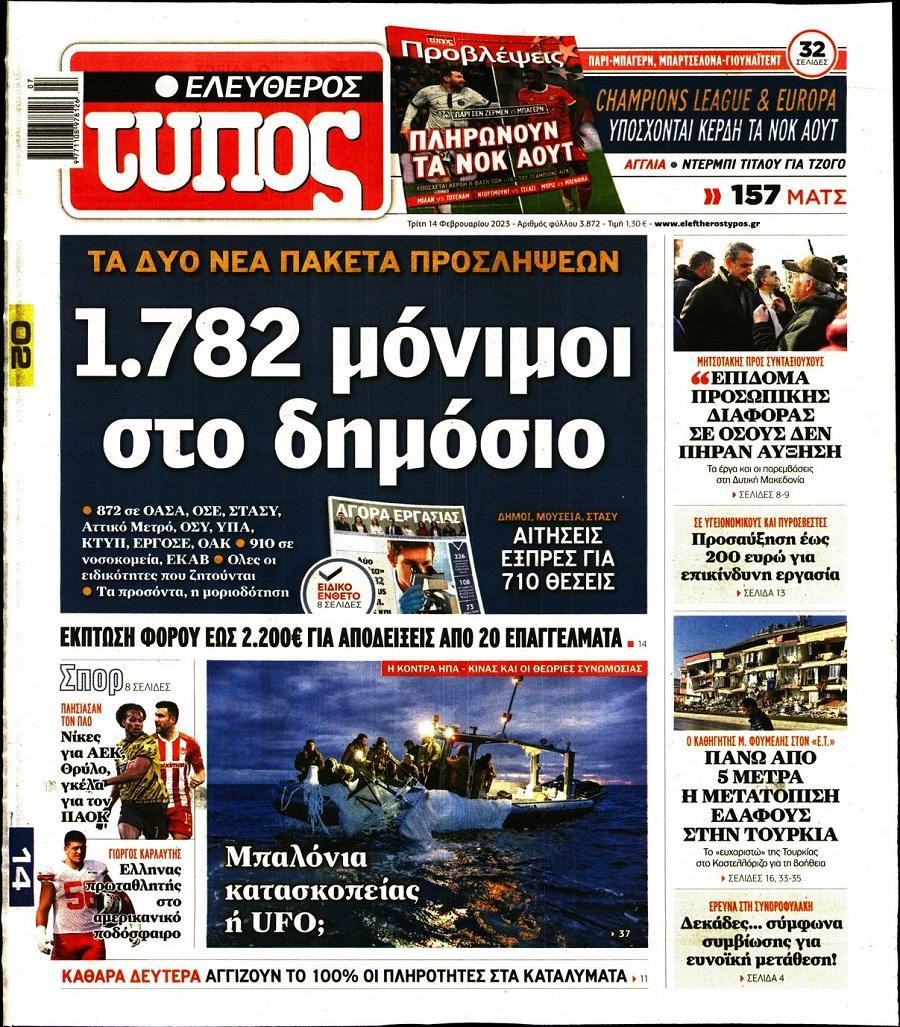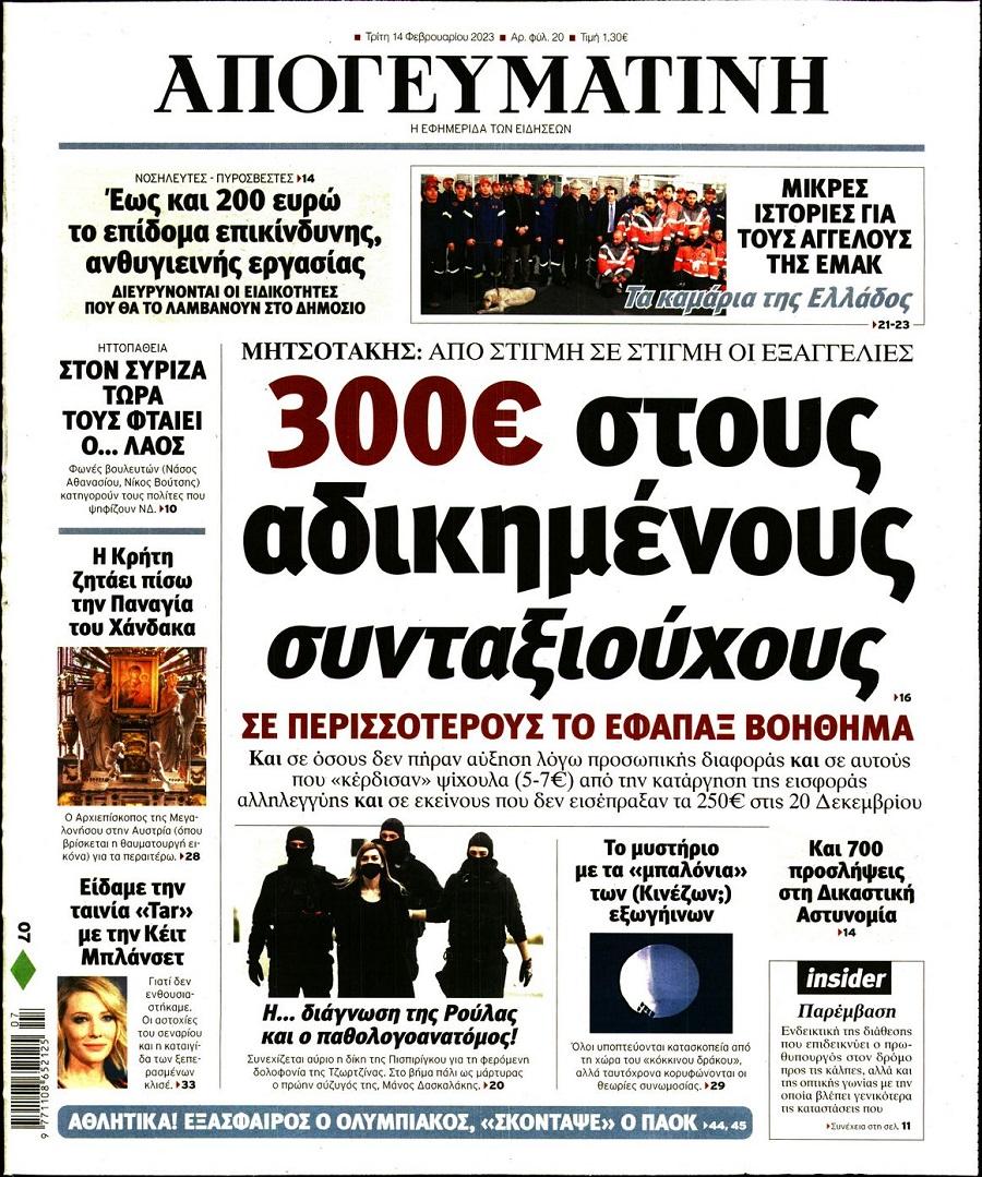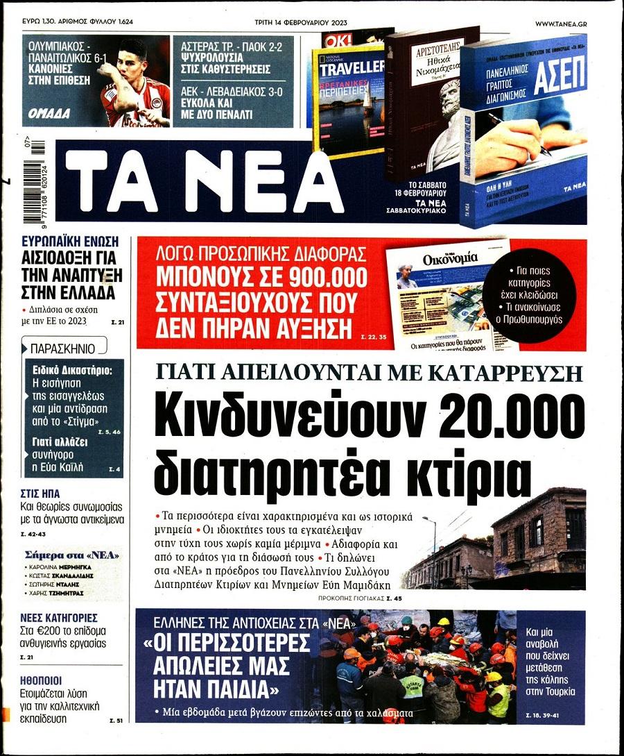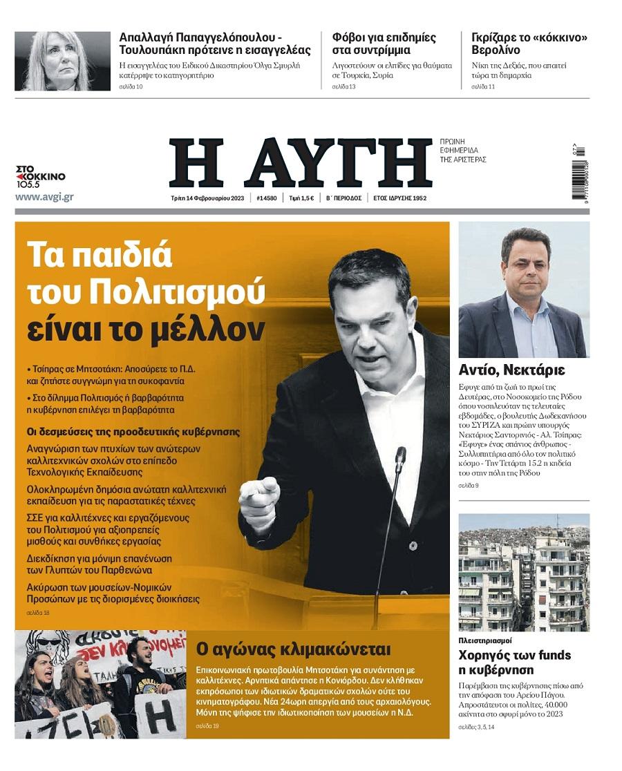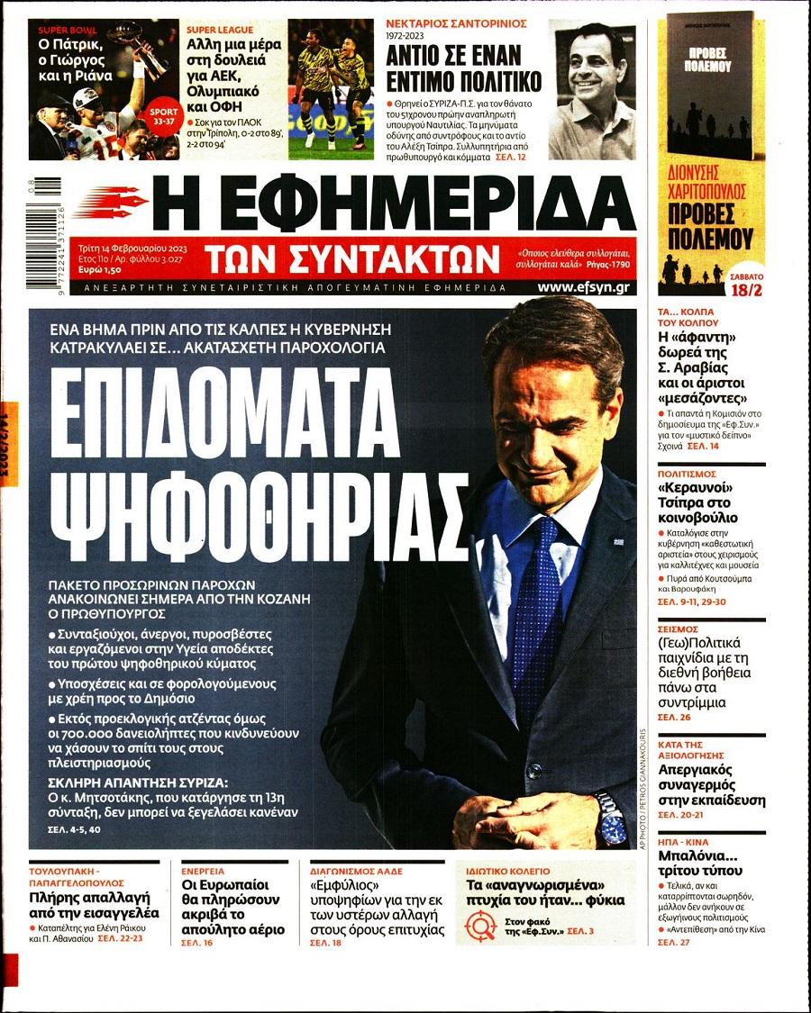 Τα πολιτικά πρωτοσέλιδα της ημέρας(14/02)