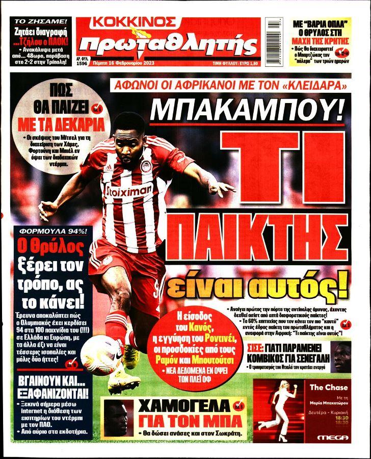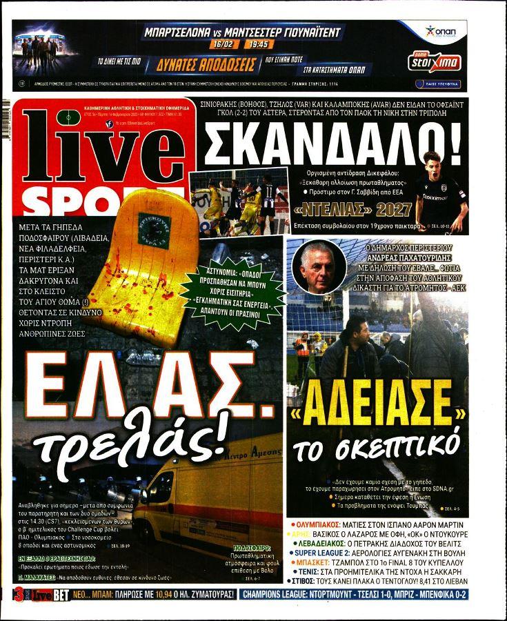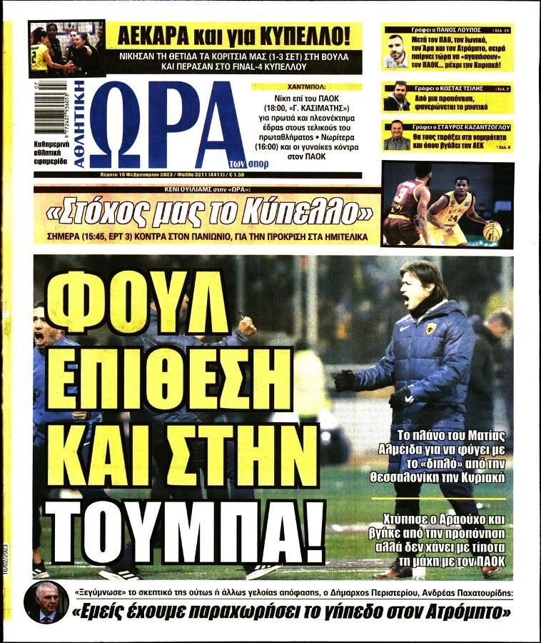 Τα αθλητικά πρωτοσέλιδα της ημέρας(16/02)