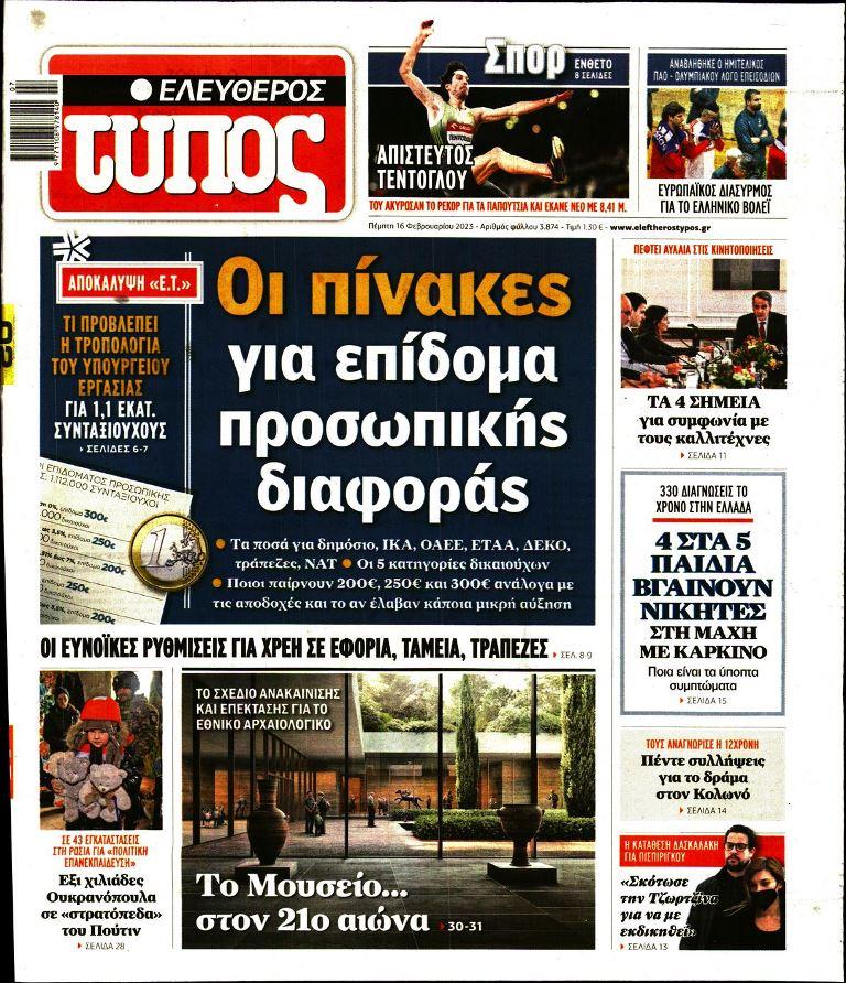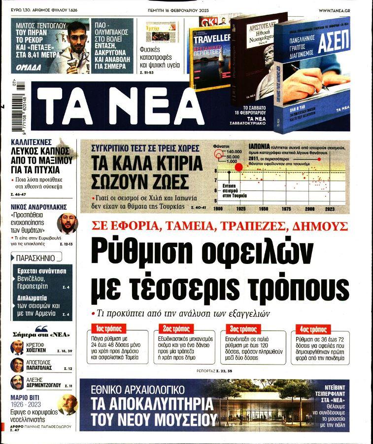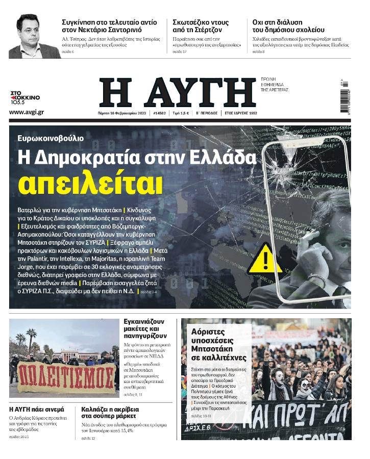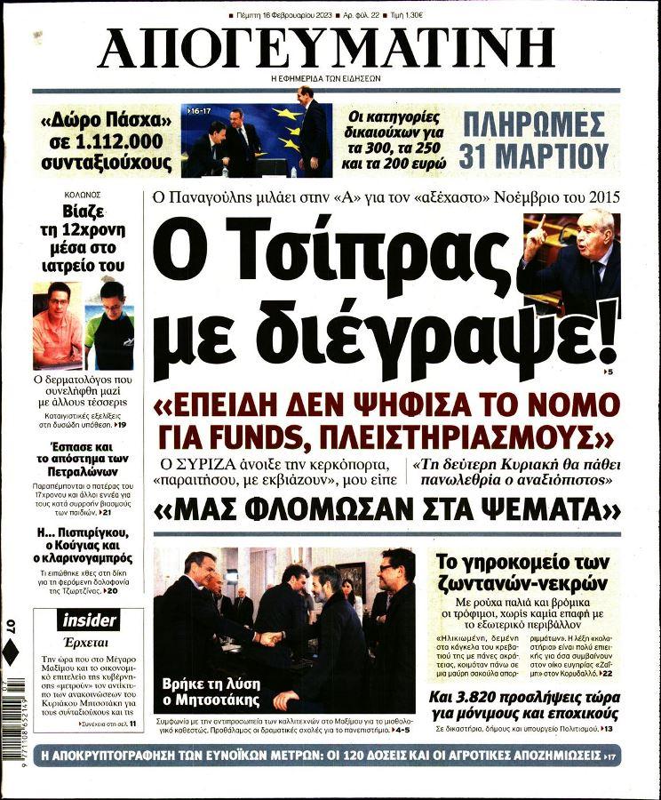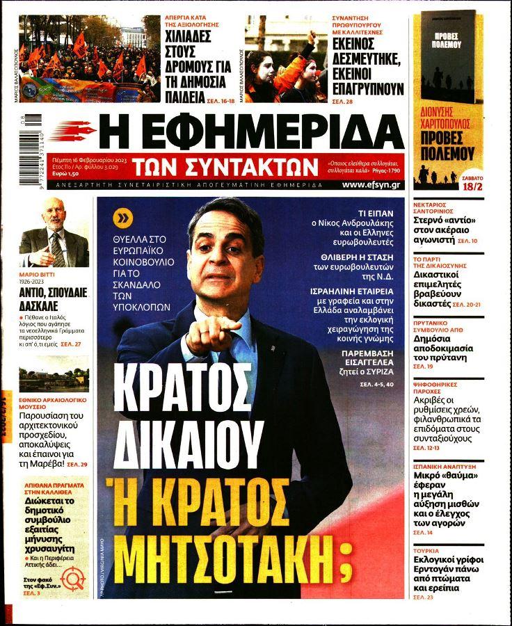 Τα πολιτικά πρωτοσέλιδα της ημέρας(16/02)