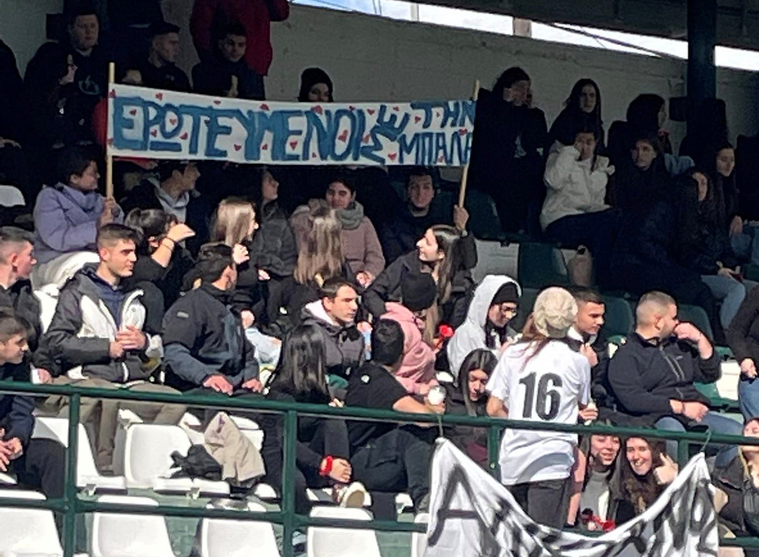 Και οι μαθητές του ΓΕΛ Αλικιανού αποδείχθηκαν άκρως ευρηματικοί σηκώνοντας ένα πανό που τους έδειχνε την μεγάλη αγάπη για το ποδόσφαιρο! “ΕΡΩΤΕΥΜΕΝΟΙ ΜΕ ΤΗΝ ΜΠΑΛΑ” έγραφε το πανό των μικρών μαθητών κερδίζοντας την… “μάχη” της εξέδρας με μεγάλη διαφορά!