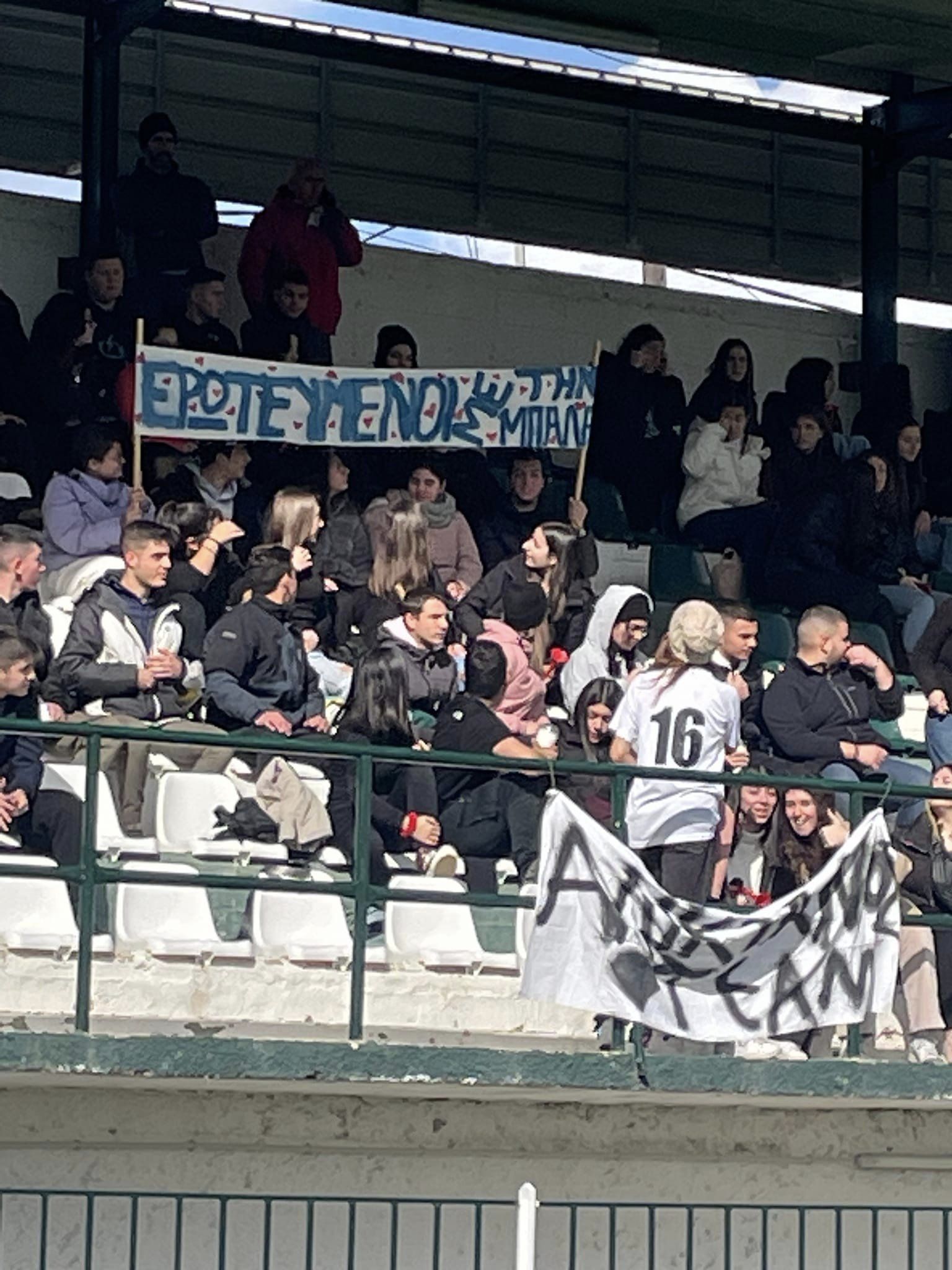 Και οι μαθητές του ΓΕΛ Αλικιανού αποδείχθηκαν άκρως ευρηματικοί σηκώνοντας ένα πανό που τους έδειχνε την μεγάλη αγάπη για το ποδόσφαιρο! “ΕΡΩΤΕΥΜΕΝΟΙ ΜΕ ΤΗΝ ΜΠΑΛΑ” έγραφε το πανό των μικρών μαθητών κερδίζοντας την… “μάχη” της εξέδρας με μεγάλη διαφορά!