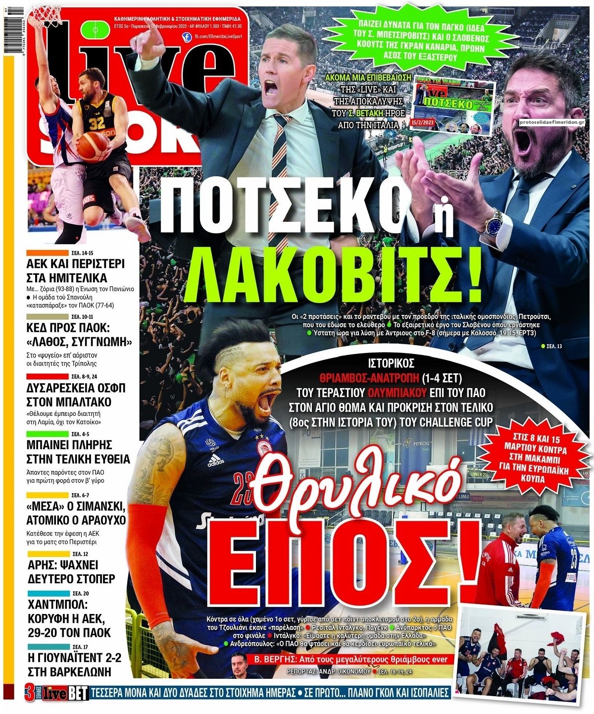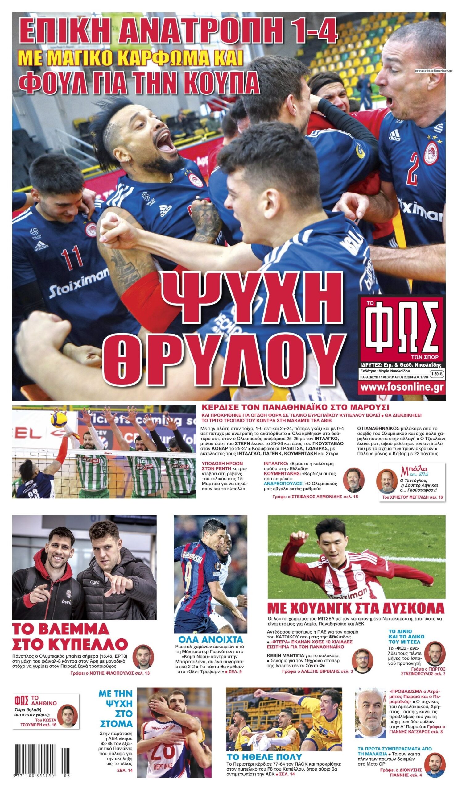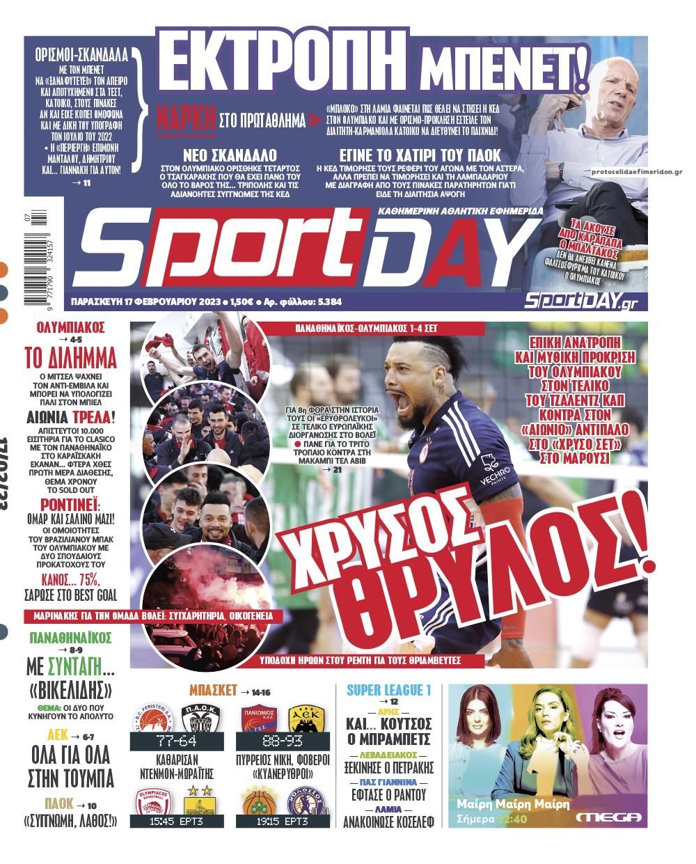 Τα αθλητικά πρωτοσέλιδα της Παρασκευής 17 Φεβρουαρίου