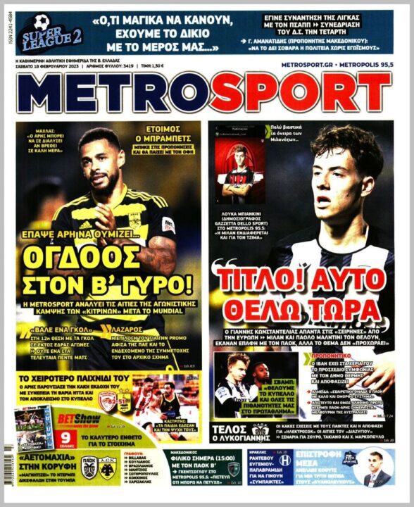 Τα αθλητικά πρωτοσέλιδα της ημέρας(18/02)