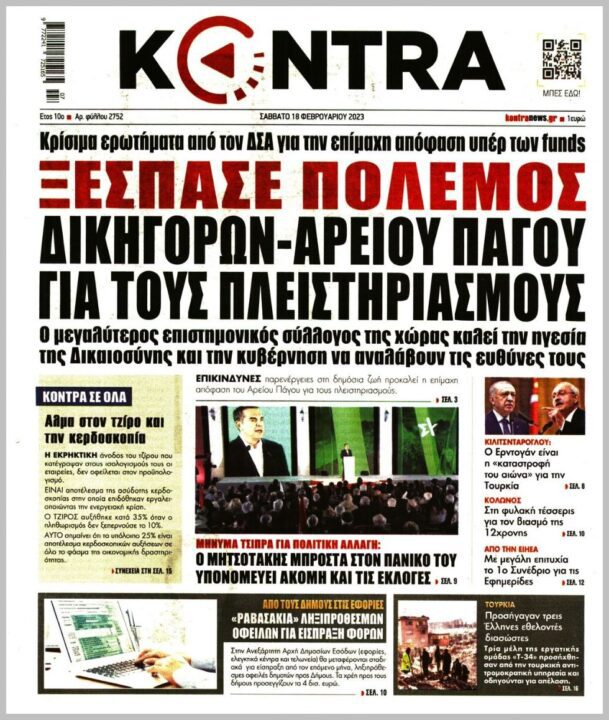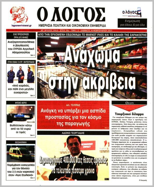 Τα πολιτικά πρωτοσέλιδα της ημέρας(18/02)