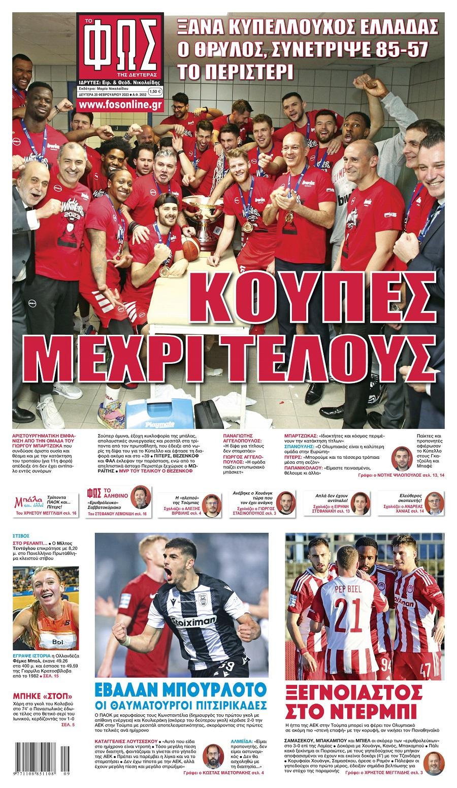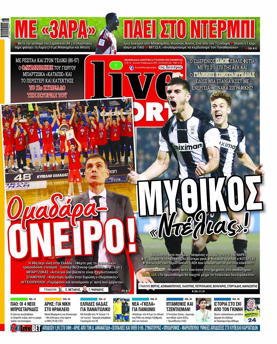 Τα αθλητικά πρωτοσέλιδα της ημέρας(20/02)