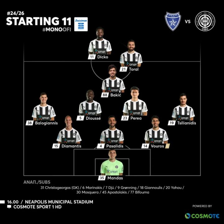 Με τους Τσιλιανίδη και Περέα να επιστρέφουν στο βασικό σχήμα, παρατάσσει ο Βάλντας Νταμπράουσκας τον ΟΦΗ στην Νίκαια για το ματς κόντρα στον Ιωνικό – Η ενδεκάδα του ΟΦΗ.