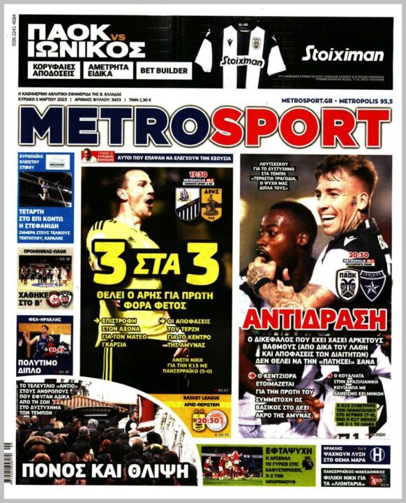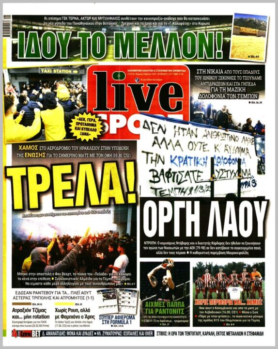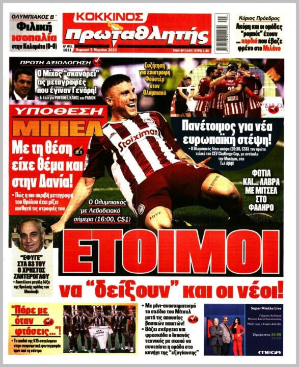 Τα αθλητικά πρωτοσέλιδα της ημέρας(05/03)