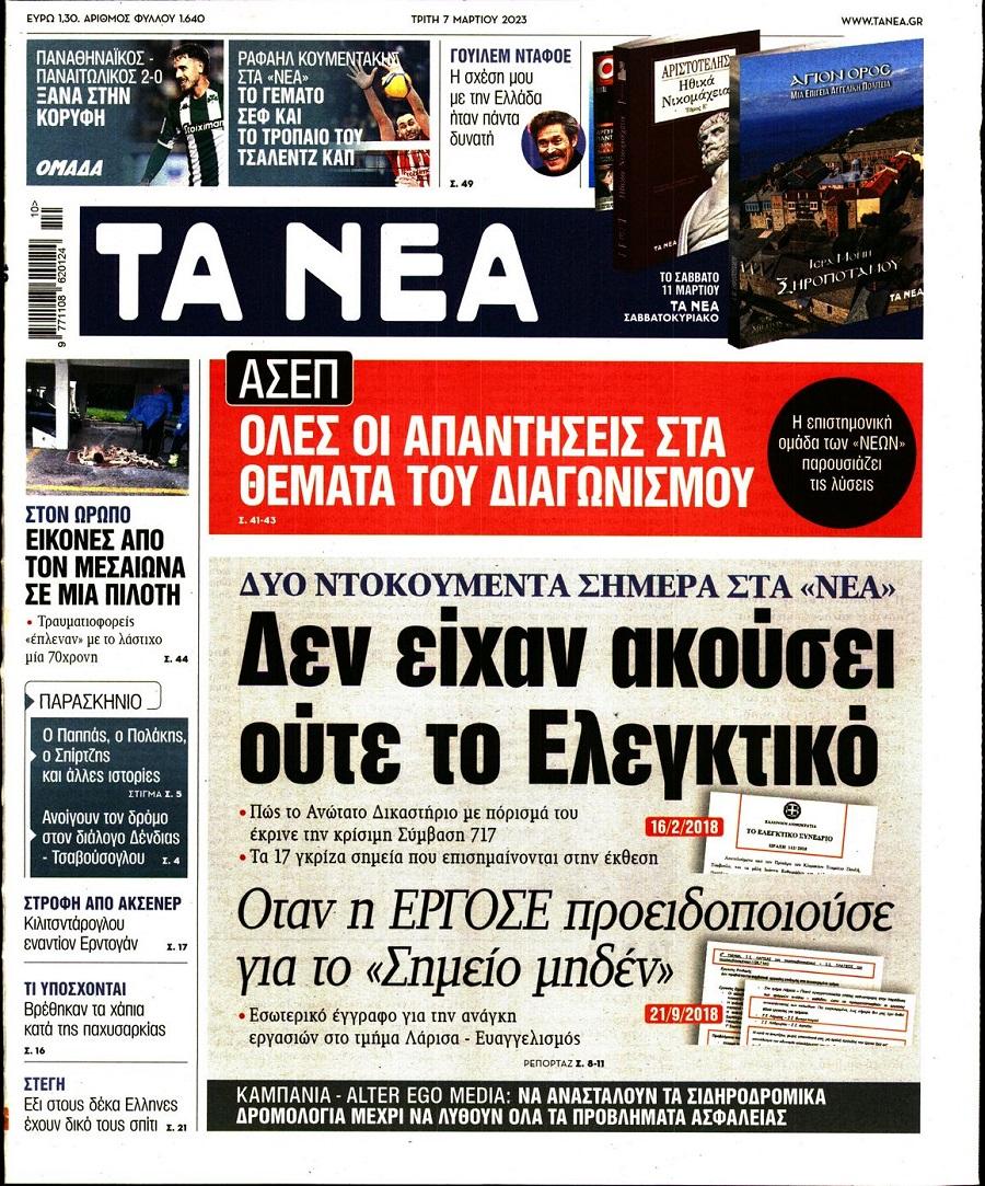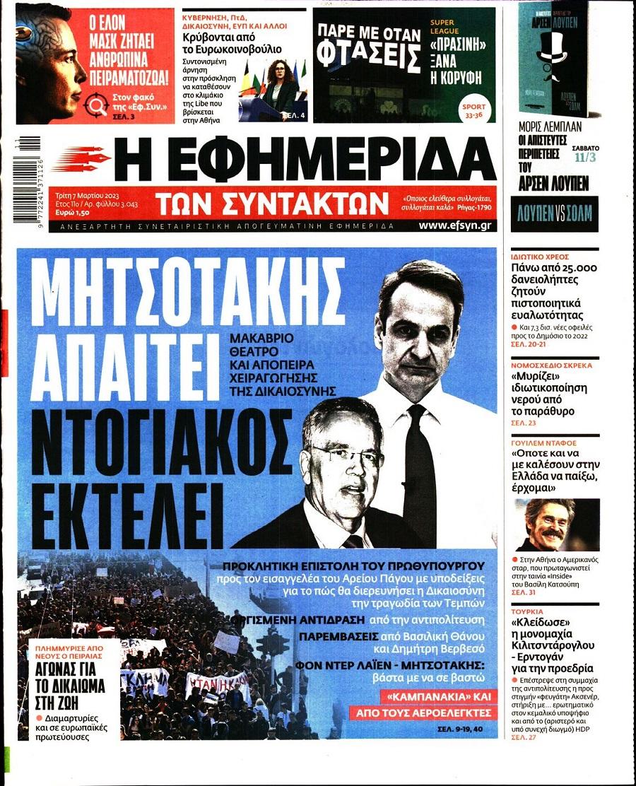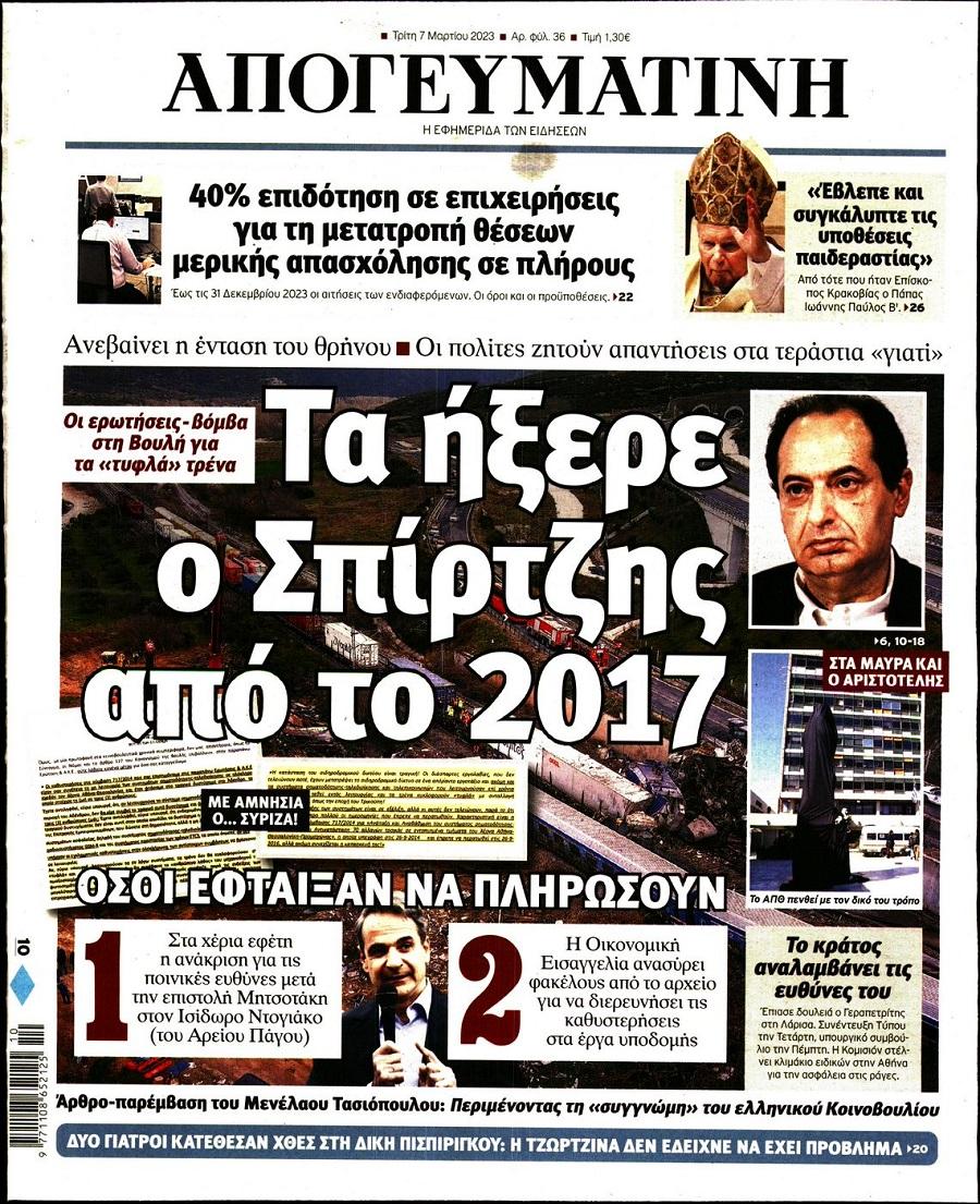 Τα πολιτικά πρωτοσέλιδα της ημέρας(07/03)