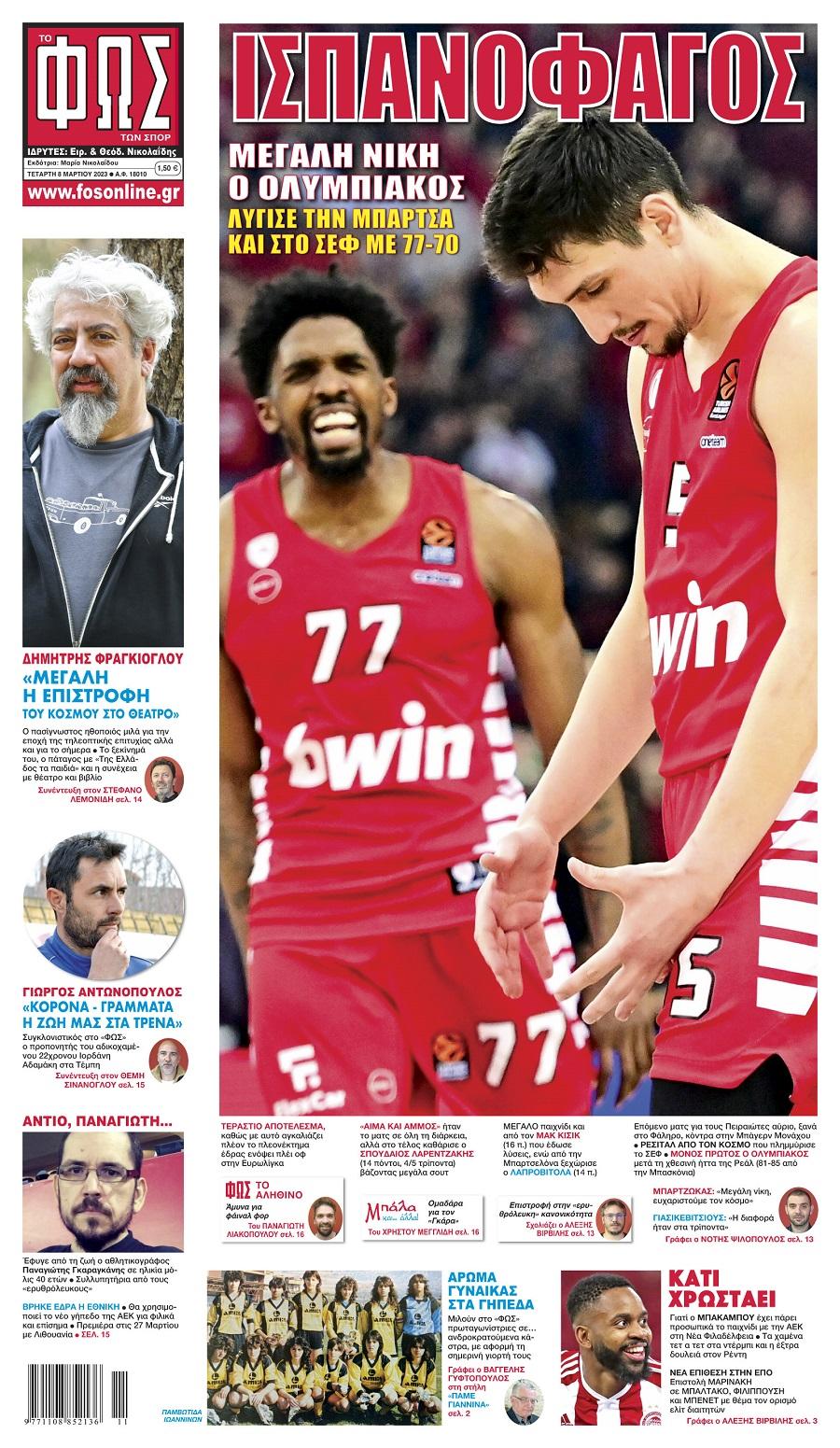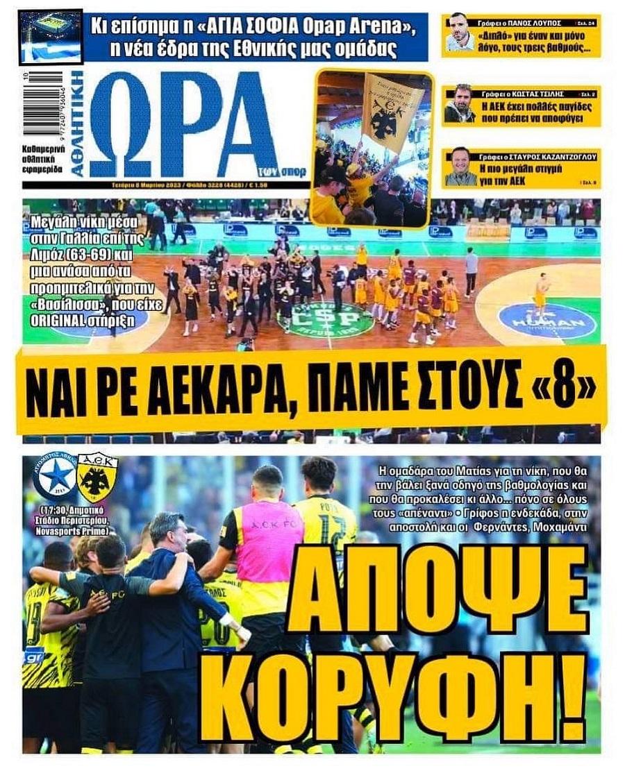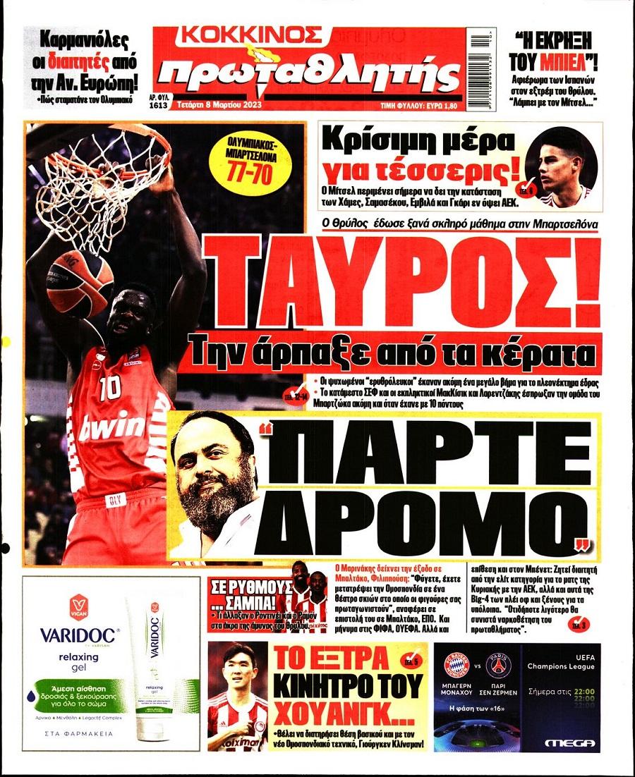 Τα αθλητικά πρωτοσέλιδα της ημέρας(08/03)