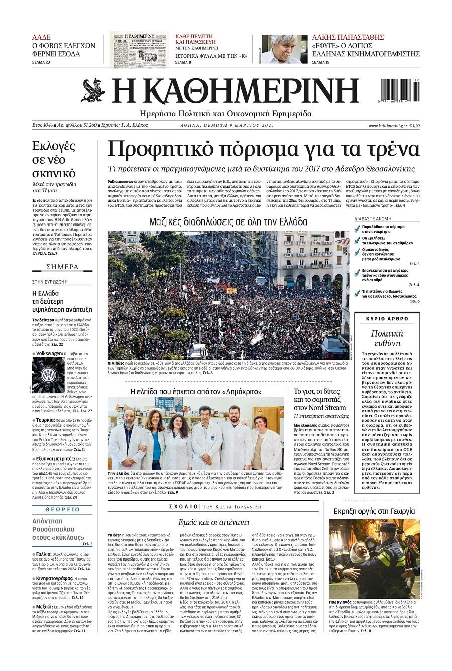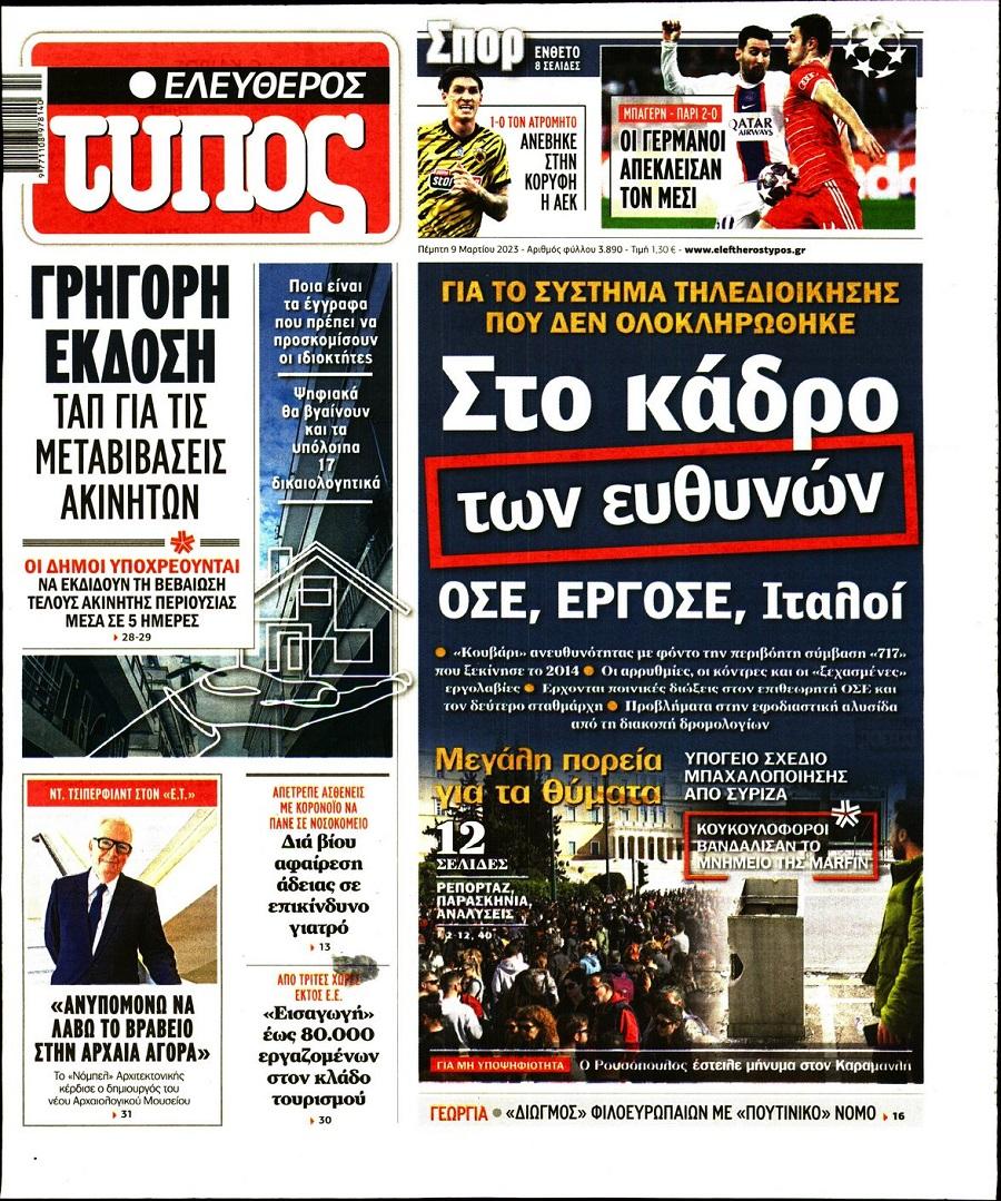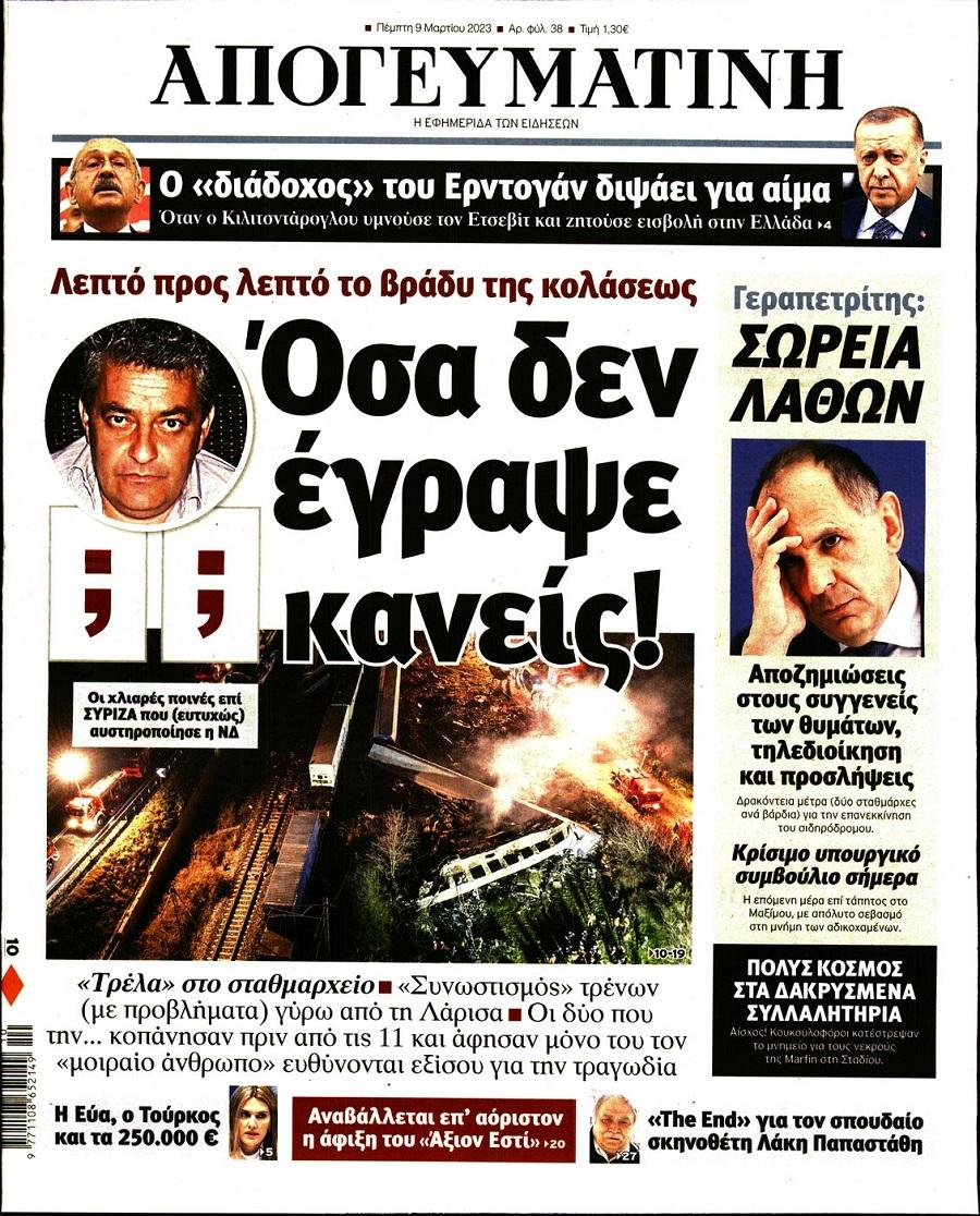 Τα πολιτικά πρωτοσέλιδα της ημέρας(09/03)