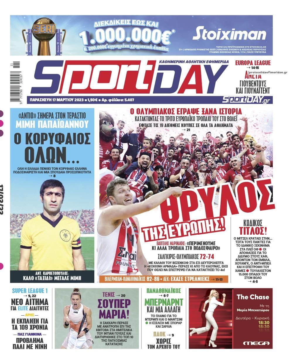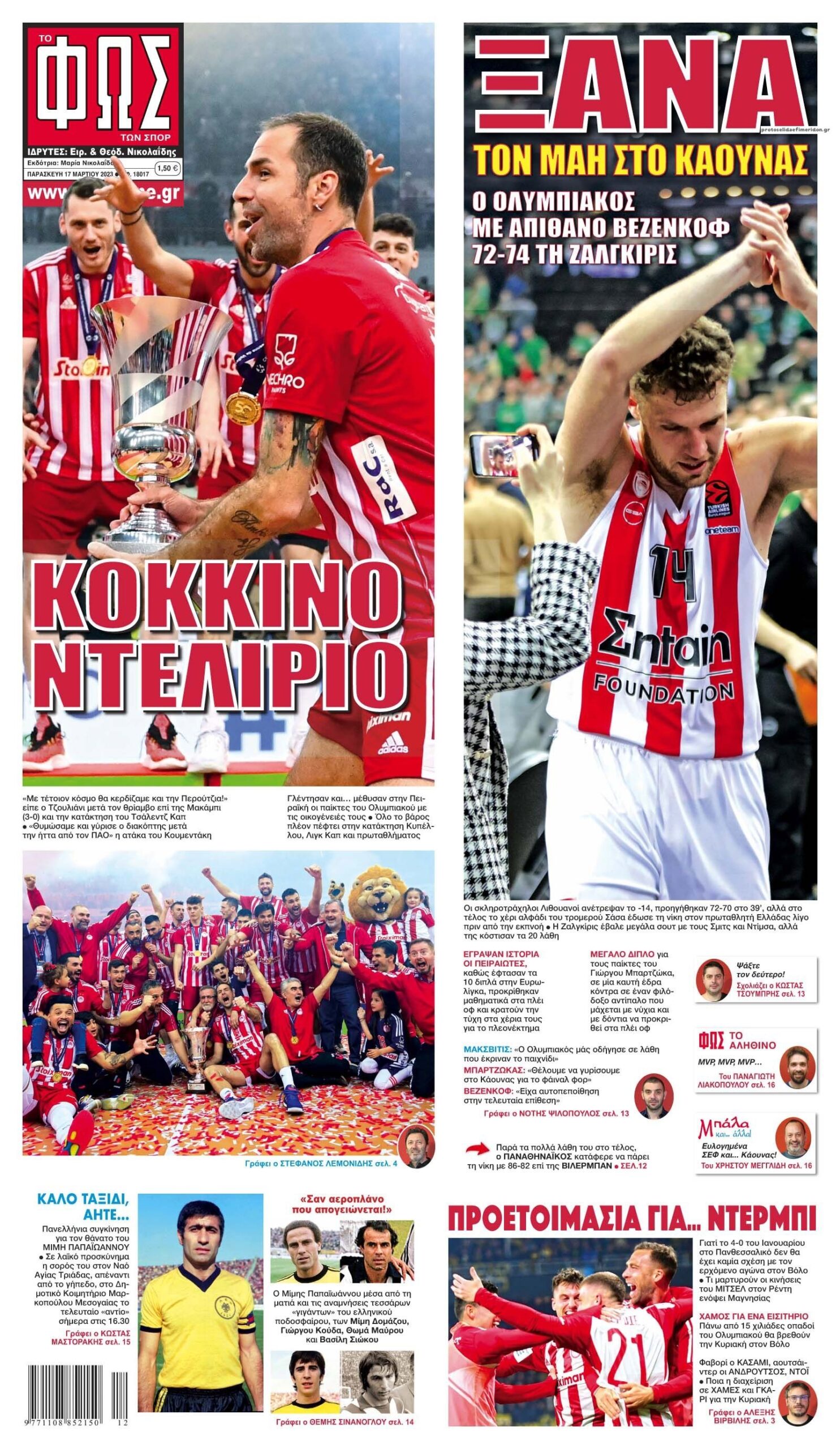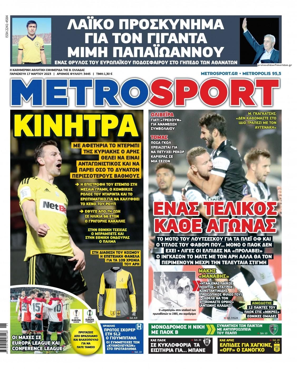 Τα αθλητικά πρωτοσέλιδα της Παρασκευής 17 Μαρτίου