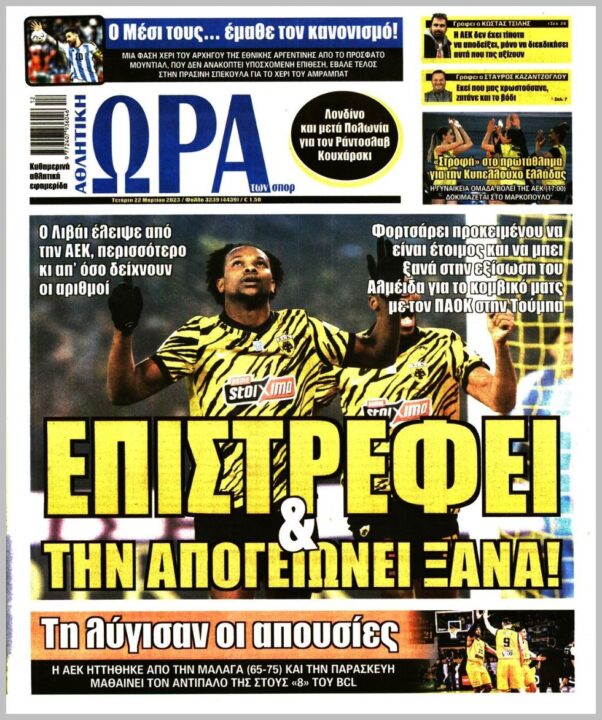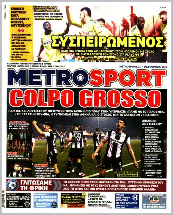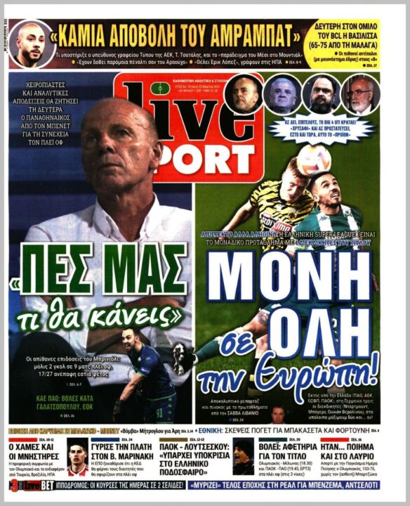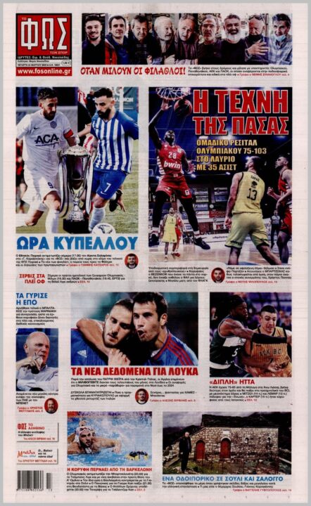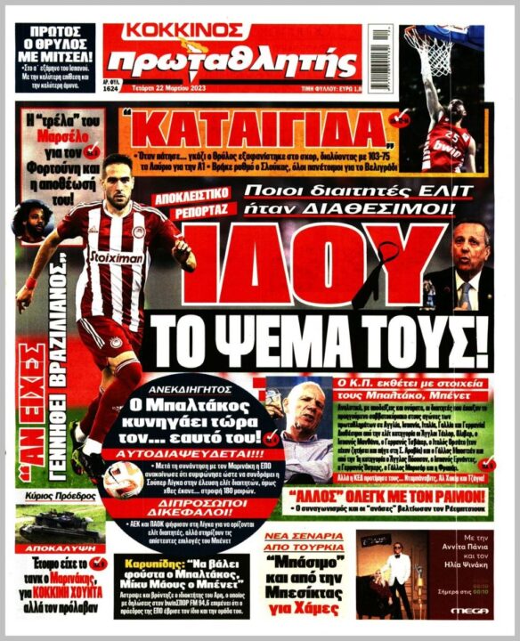 Τα αθλητικά πρωτοσέλιδα της Τετάρτης (22/3)