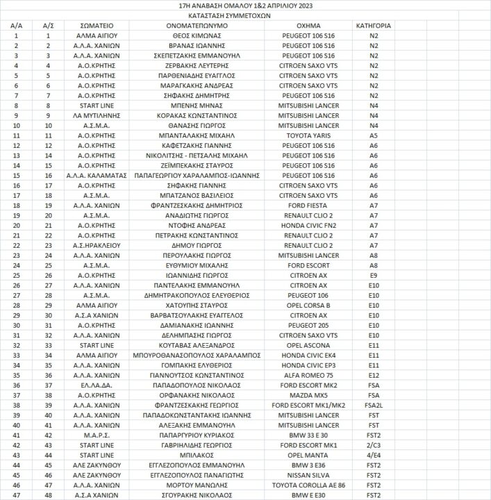 Με την συμμετοχή 47 πληρωμάτων από πολλές περιοχές της Ελλάδας, διεξάγεται το προσεχές Σαββατοκύριακο η 17η Πρωταθληματική Ανάβαση Ομαλού, την οποία διοργανώνει η Α.Λ.Α. Χανίων και για μια ακόμη χρονιά αναμένεται να επιβεβαιώσει τις προσδοκίες αναφορικά με μια άρτια διοργάνωση.