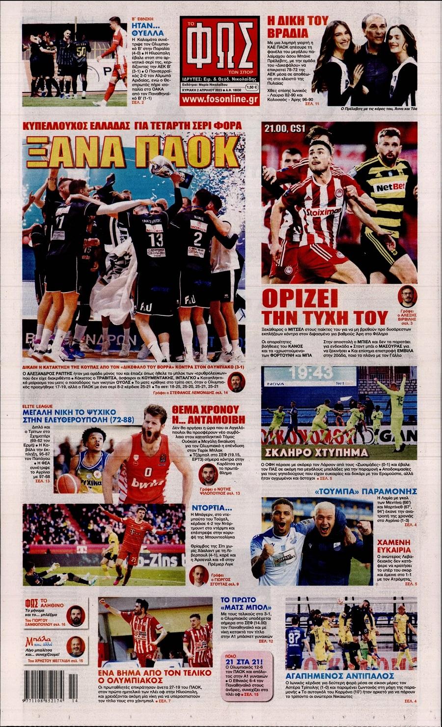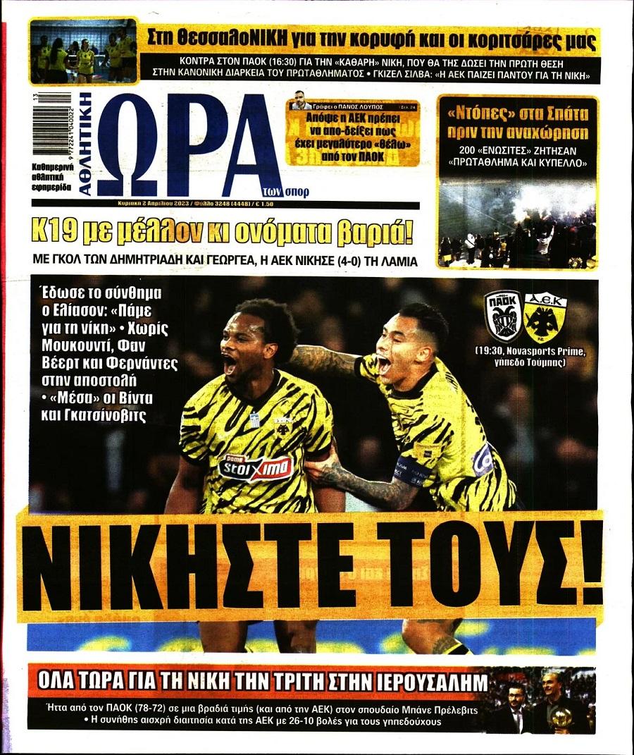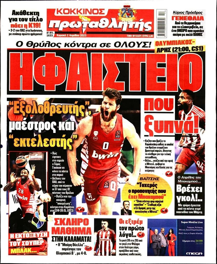 Τα αθλητικά πρωτοσέλιδα της ημέρας(02/04)