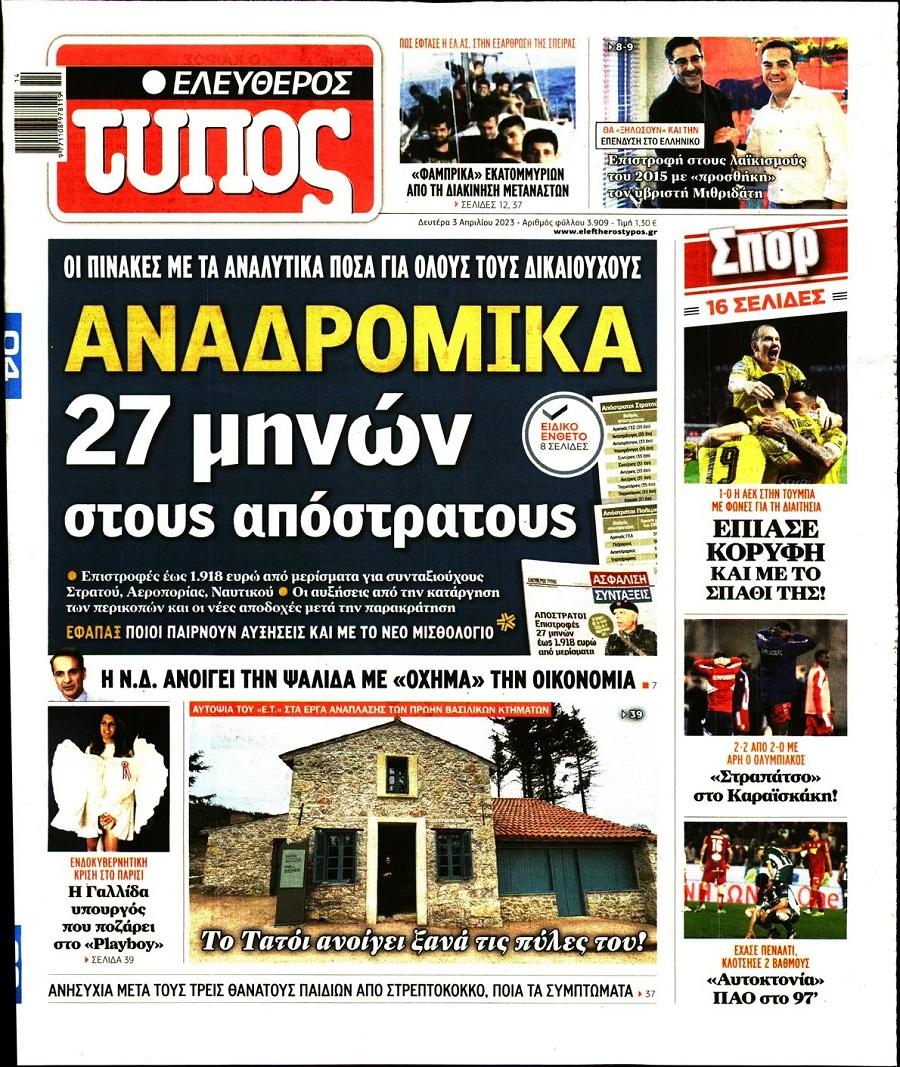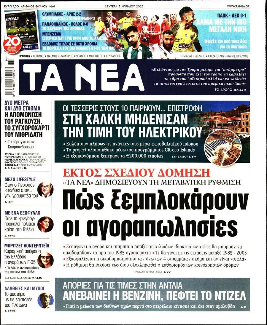 Τα πολιτικά πρωτοσέλιδα της ημέρας(03/04)