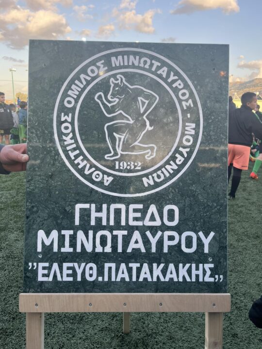 Με κάθε επισημότητα από σήμερα το γήπεδο των Μουρνιών, η έδρα του ιστορικού Μινώταυρου, φέρει το όνομα του Λευτέρη Πατακάκη