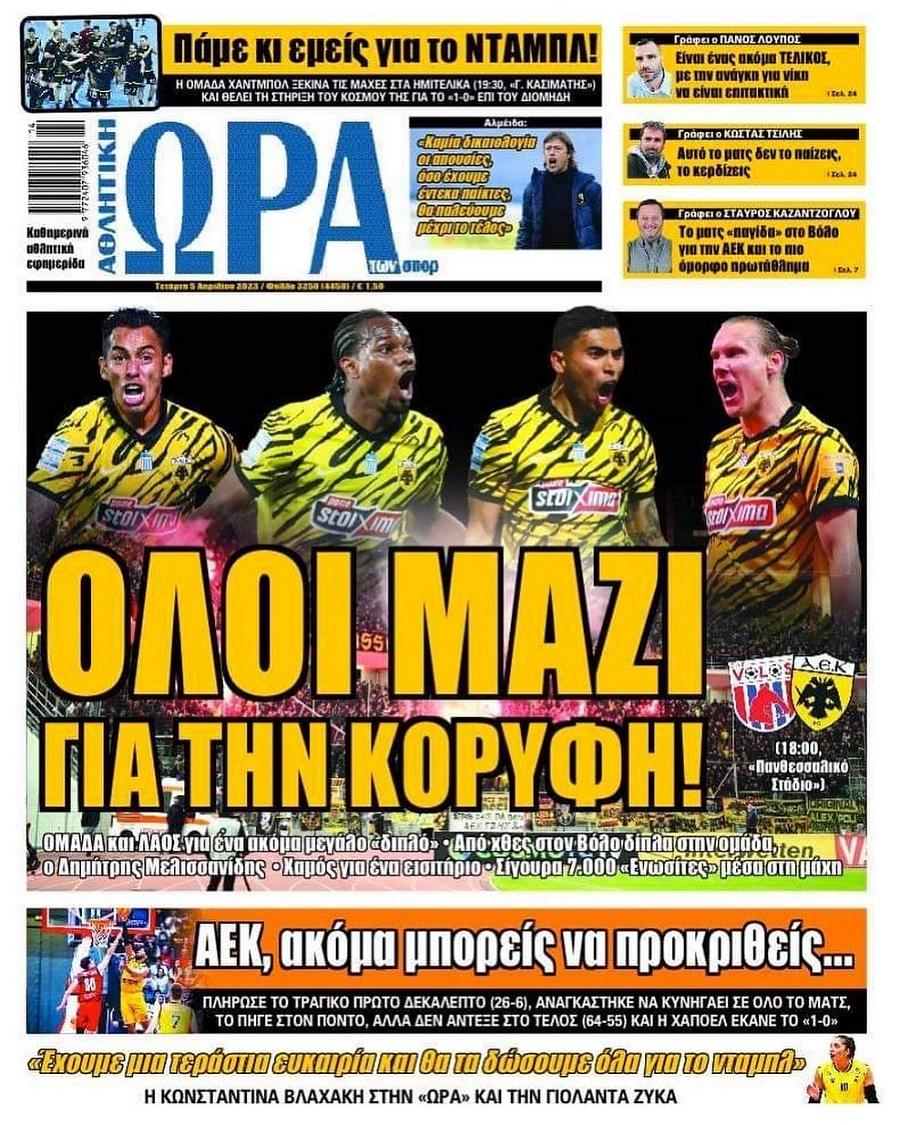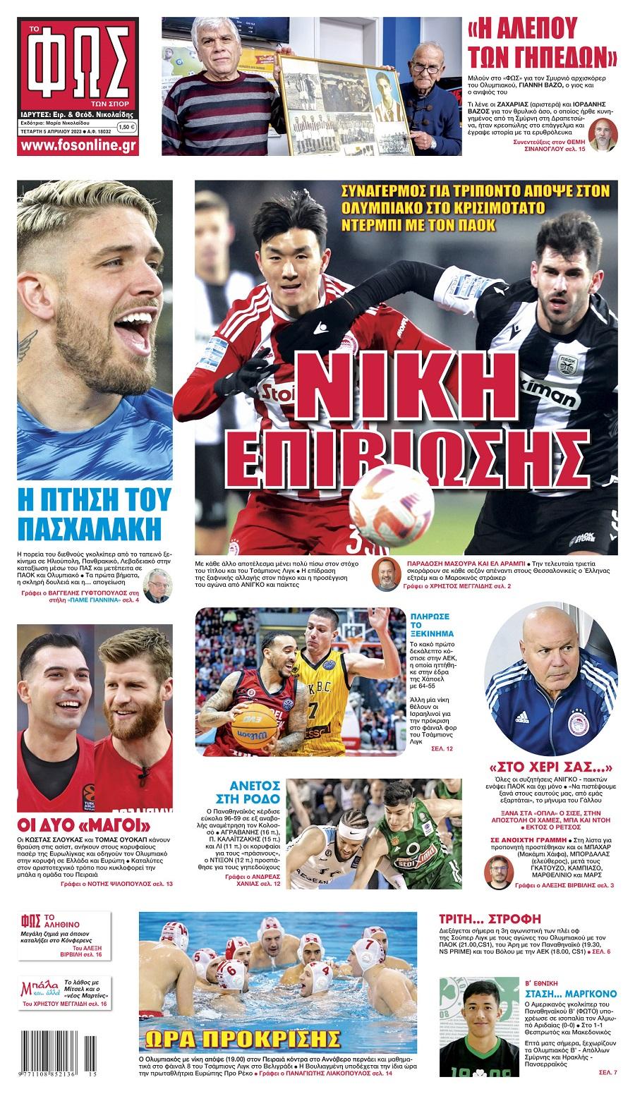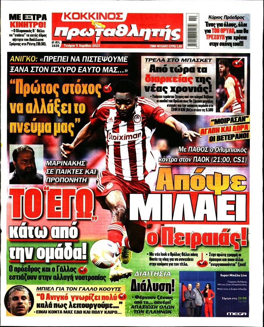 Τα αθλητικά πρωτοσέλιδα της ημέρας(05/04)