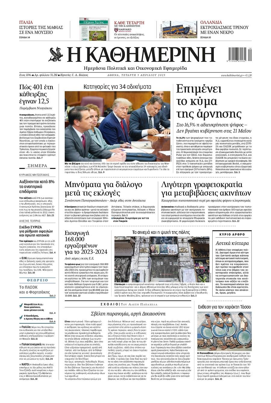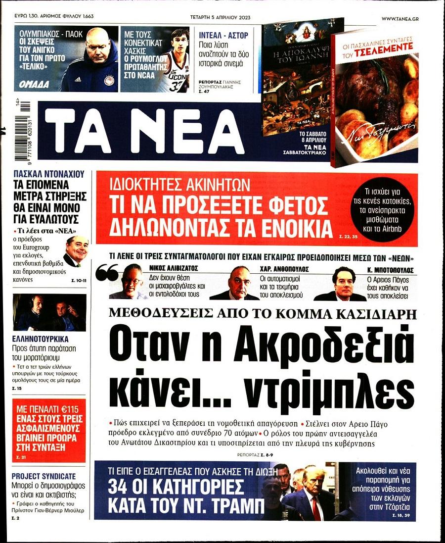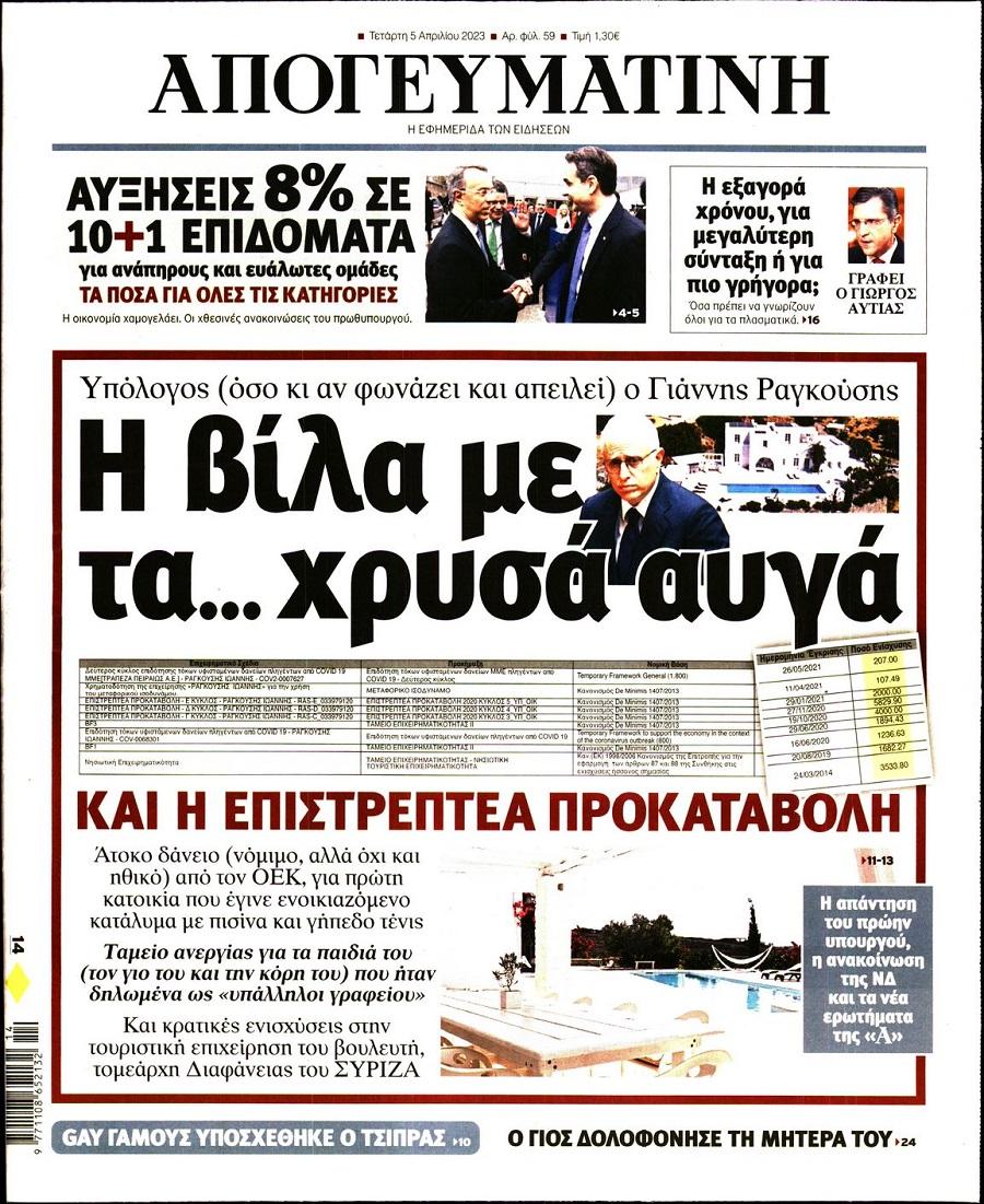 Τα πολιτικά πρωτοσέλιδα της ημέρας(05/04)