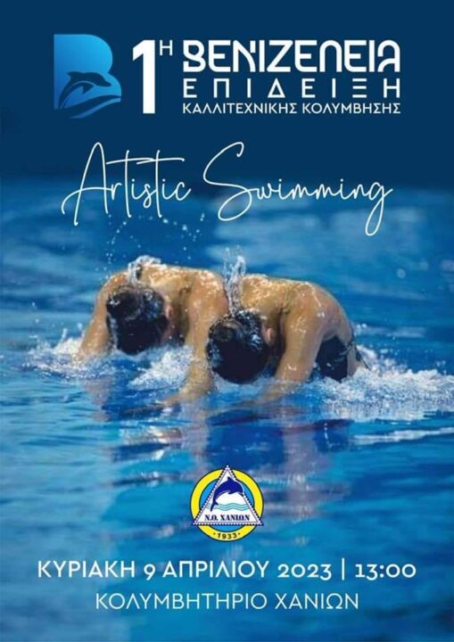 Ο Ναυτικός Ομιλος Χανίων ανακοινώνει την πραγματοποίηση των 1ων Βενιζελείων αγώνων καλλιτεχνικής κολύμβησης που θα διεξαχθούν την Κυριακή 9 Απριλίου στη 1 το μεσημέρι στο κολυμβητήριο Χανίων.