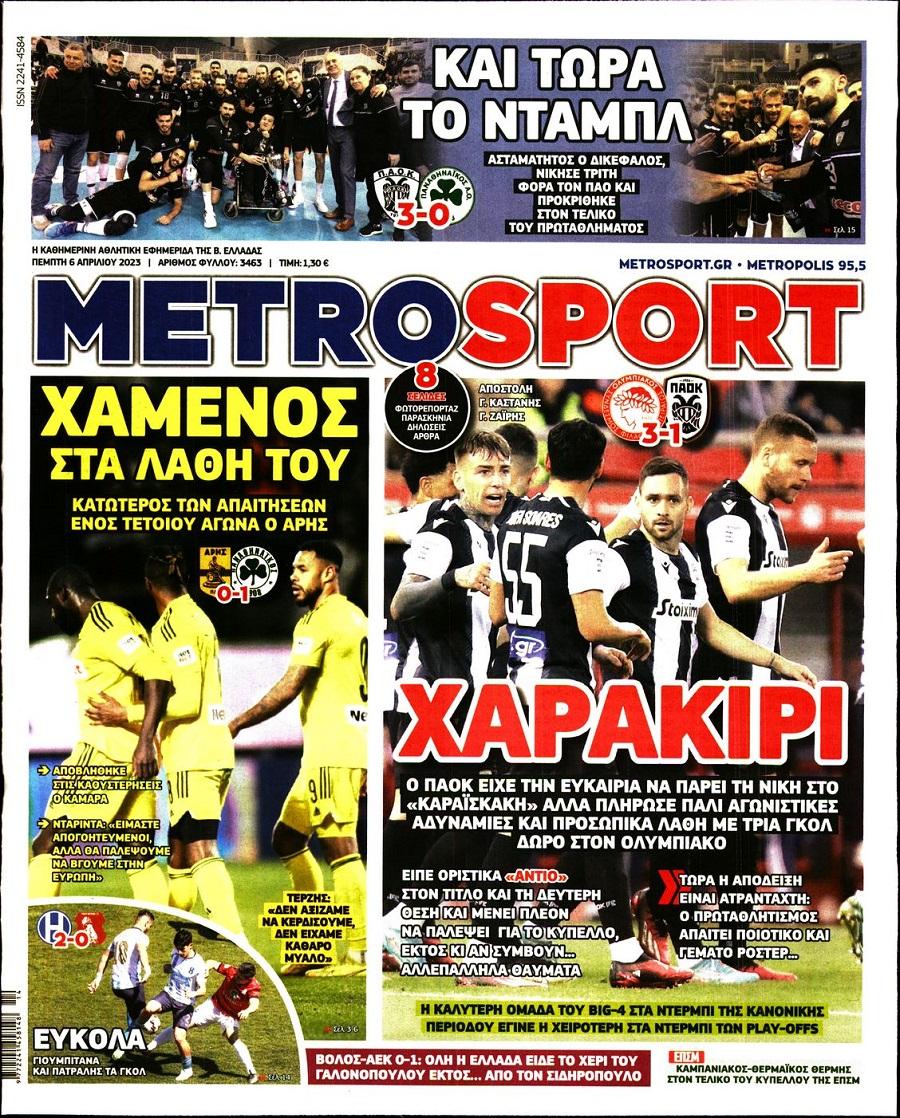 Τα αθλητικά πρωτοσέλιδα της ημέρας(06/04)