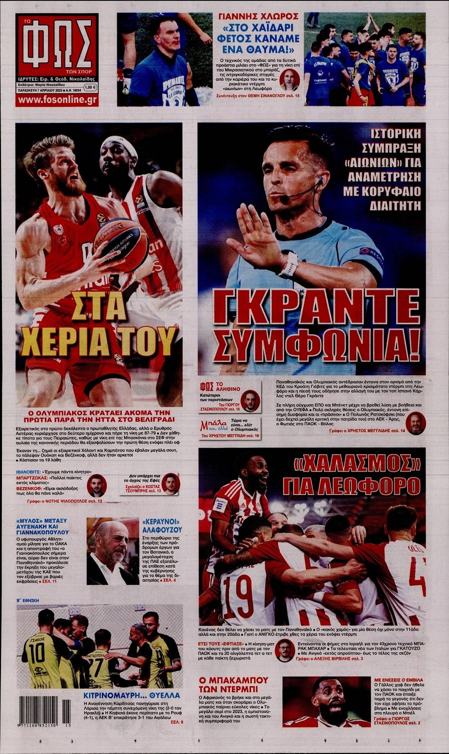 Τα αθλητικά πρωτοσέλιδα της ημέρας(07/04)