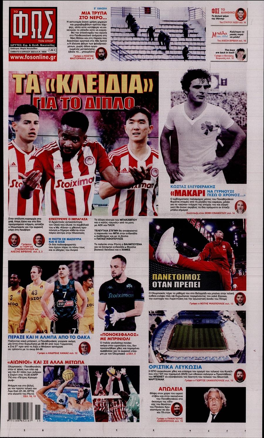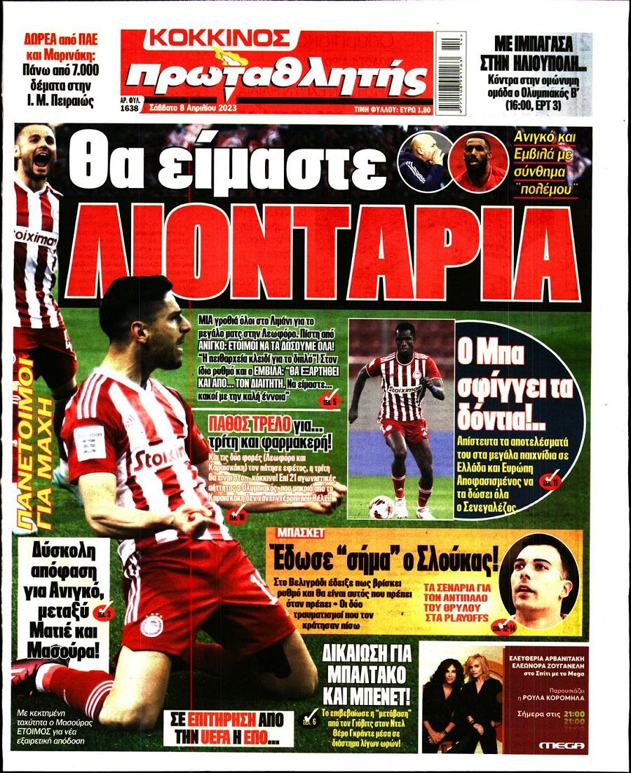Τα αθλητικά πρωτοσέλιδα της ημέρας(08/04)