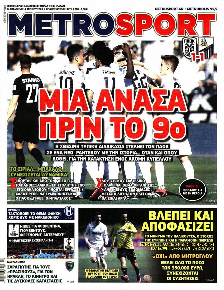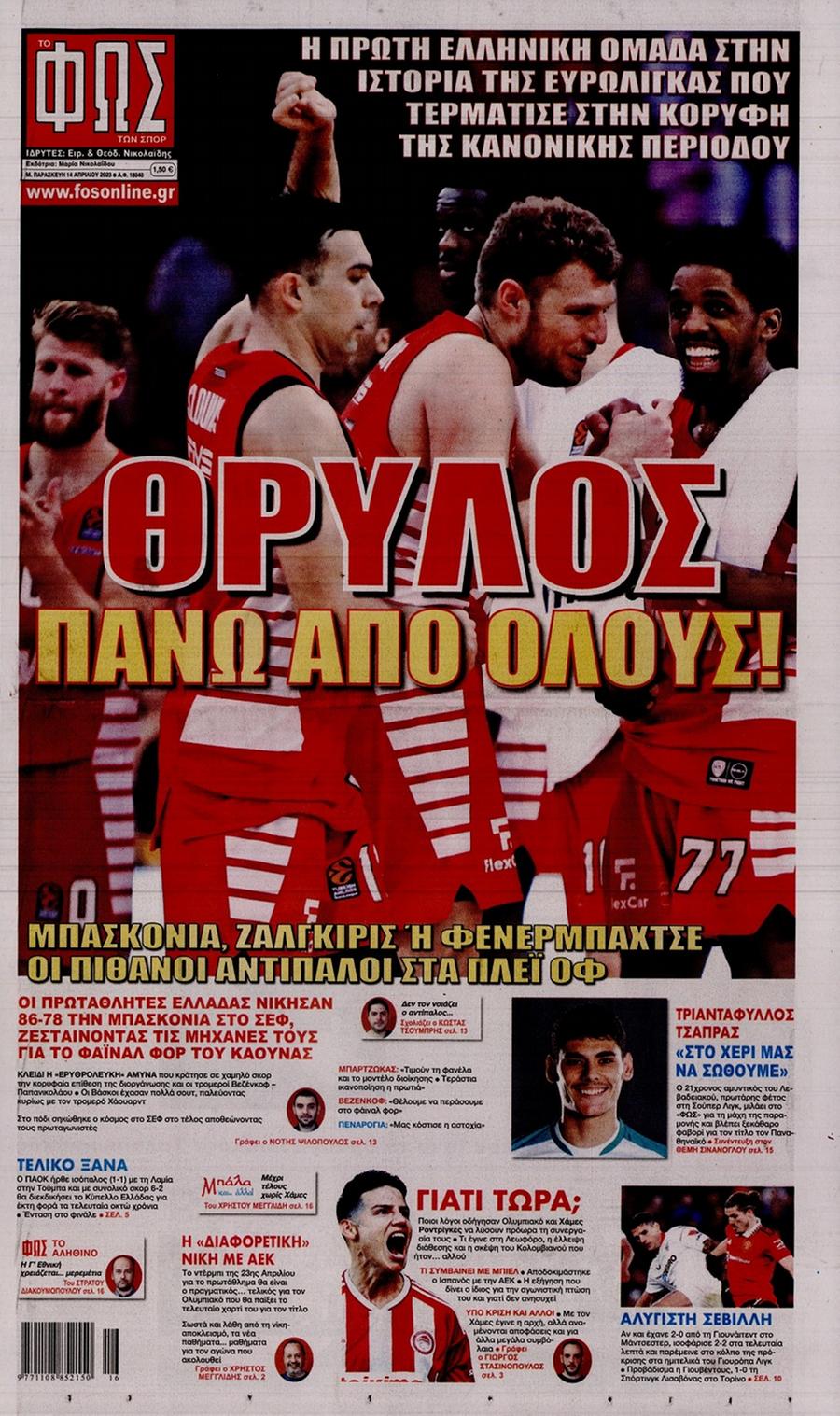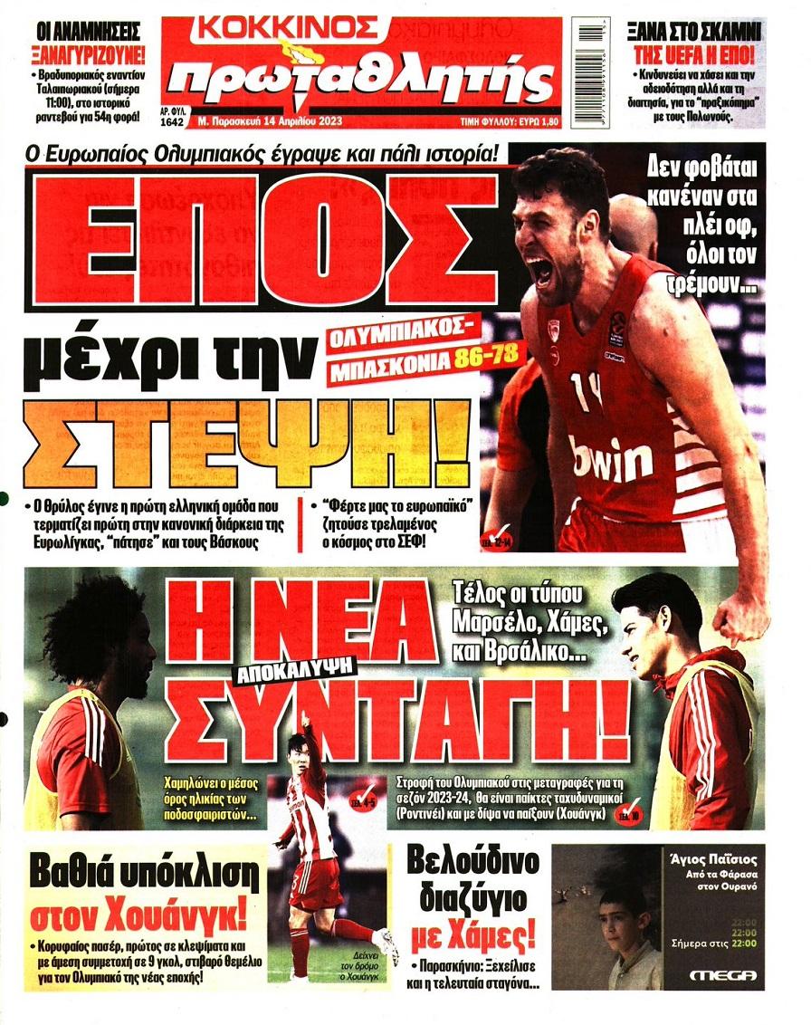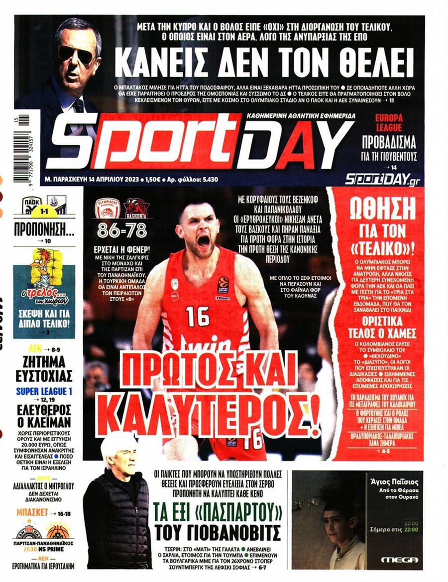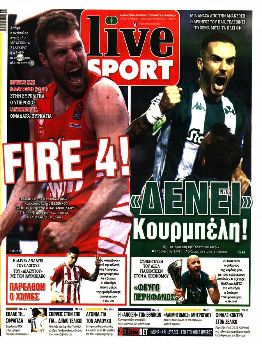 Τα αθλητικά πρωτοσέλιδα της ημέρας(14/04)