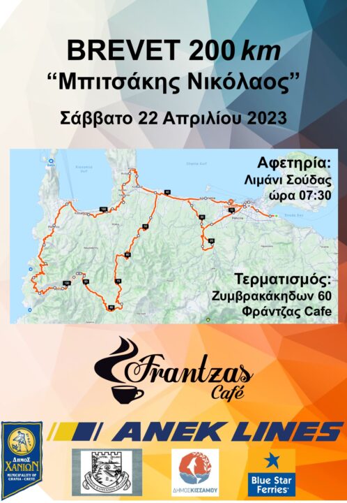 Το Brevet 200 χιλιομέτρων θα γίνει στα Χανιά, και θα συνδυάσει μερικά από τα πιο όμορφα ασφάλτινα κομμάτια του νομού. Η όμορφη ποδηλατική διοργάνωση διεξάγεται για πρώτη φορά στην Κρήτη και σκοπός είναι να τιμηθεί η μνήμη του αθλητή ποδηλασίας Νίκου Μπιτσάκη, που έφυγε από την ζωή τον Φεβρουάριο του 2022. Ο άτυχος αθλητής καταπλακώθηκε από έναν τοίχο, ο οποίος κατέρρευσε από παλαιό κτίσμα στο κέντρο της Λάρισας όπου πραγματοποιούσε τις σπουδές του.