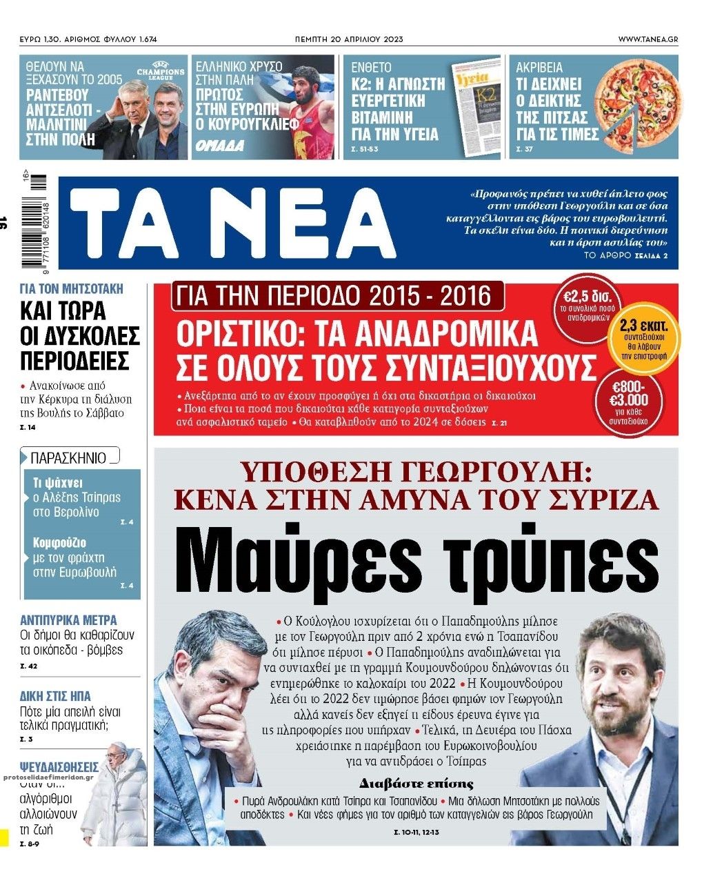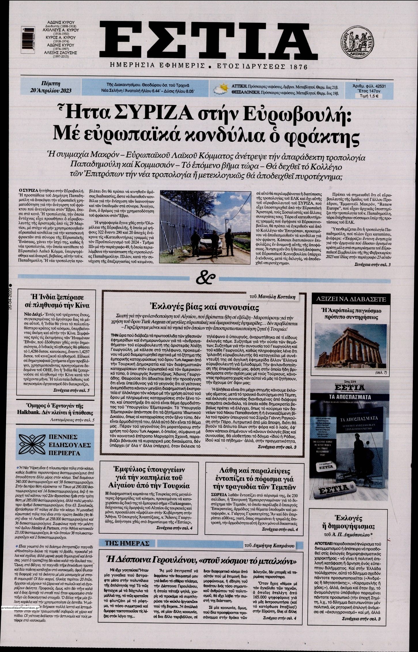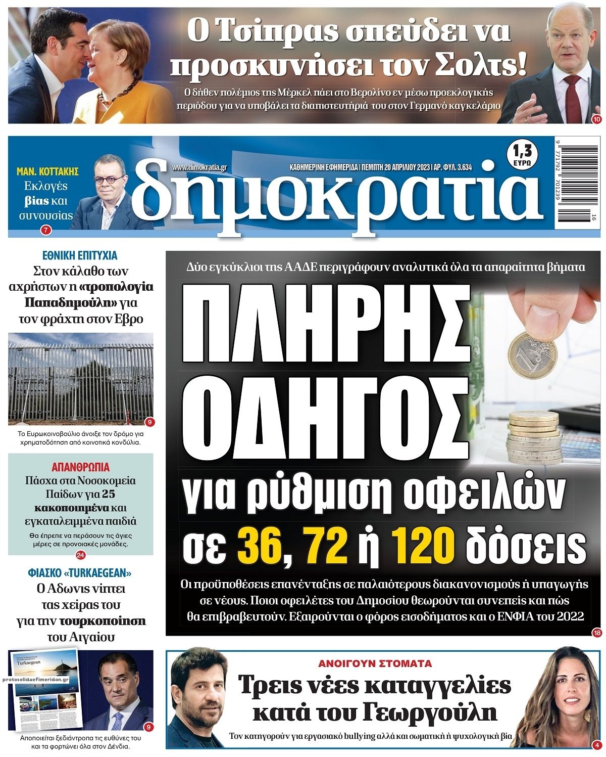 Ο πολιτικός τύπος της Πέμπτης 20 Απριλίου