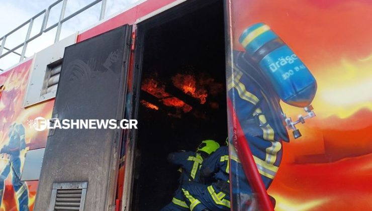 Φλόγες που ξεπηδούν από εστία μαγειρέματος ενώ δίπλα υπάρχουν φιάλες υγραερίου, κρεβάτι αλλά και ταβάνι που τυλίγονται από τις φλόγες με την φωτιά να επεκτείνεται και σε κλιμακοστάσιο με αποτέλεσμα να έχει εγκλωβιστεί και ένας άνθρωπος.