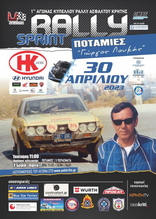 Ο φετινός αγώνας ονομάζεται «Γιώργος Λουκάς» προς τιμήν του παλαιού αγωνιζόμενου, οδηγού, φίλου, και μέλος του ΑΟ Κρήτης που έφυγε ξαφνικά από κοντά μας πριν μερικούς μήνες. Ο αγώνας θα διεξαχθεί στην ομώνυμη διαδρομή «Ποταμιές – Ασκοί» 11.15 αγωνιστικών χιλιομέτρων στην οποία τα πληρώματα θα διαγωνιστούν 3 φορές.