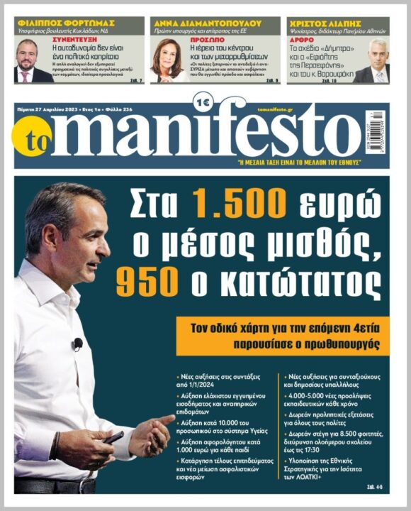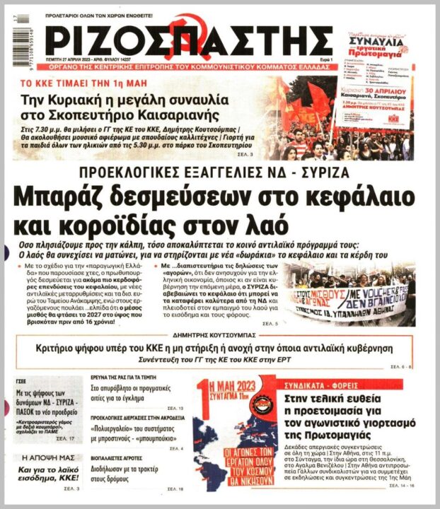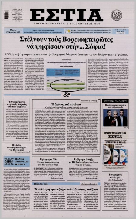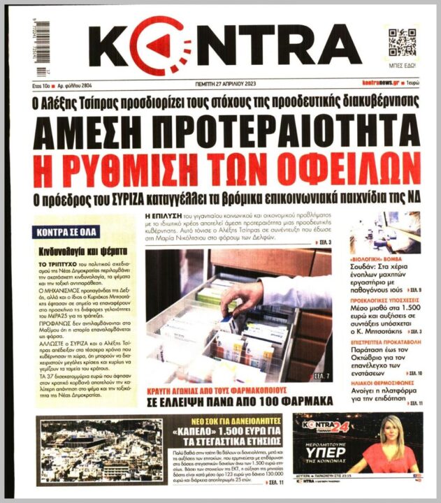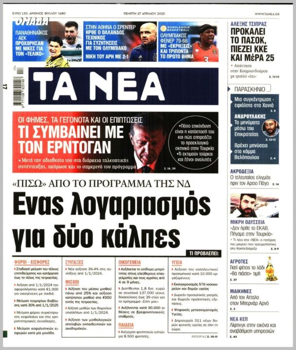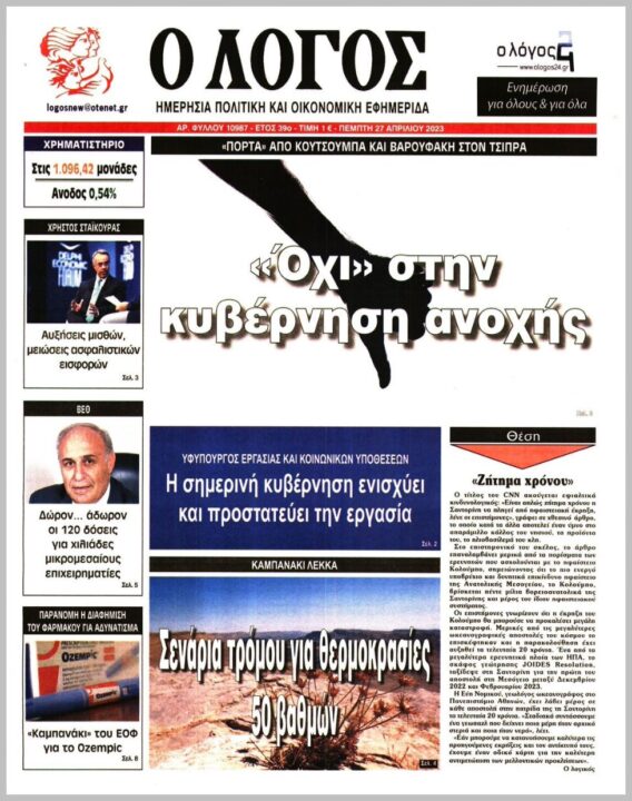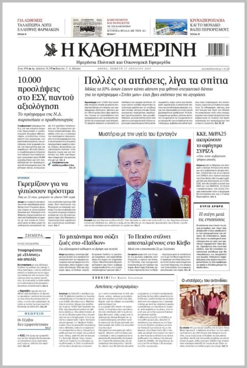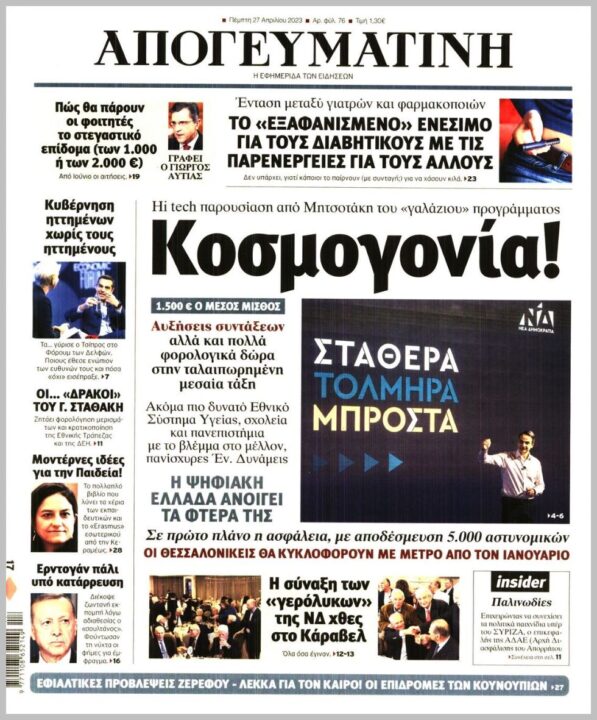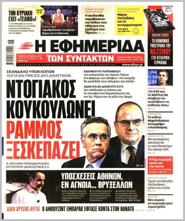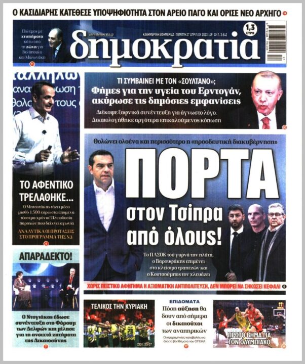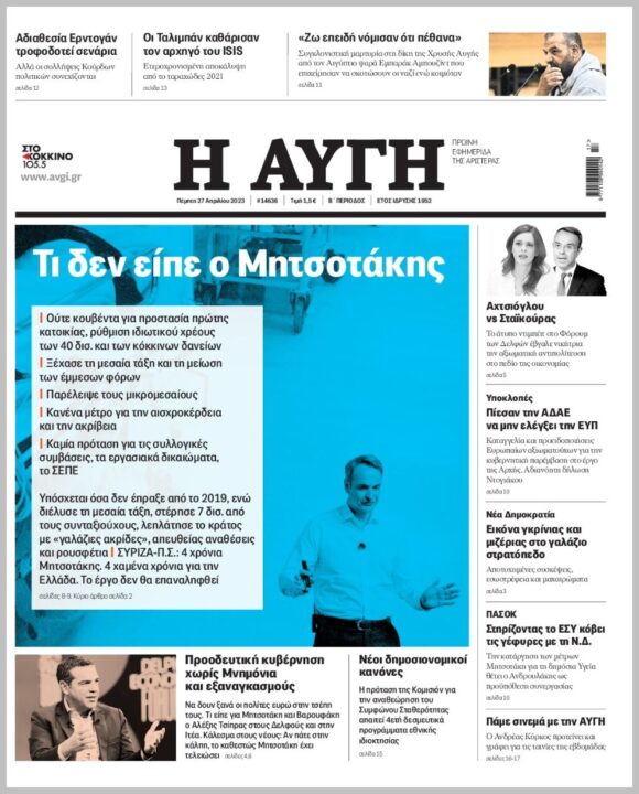 Τα πρωτοσέλιδα των πολιτικών εφημερίδων της Πέμπτης (27/4)