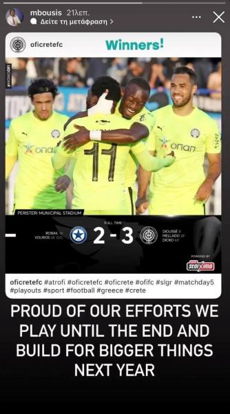 «Περήφανος για τις προσπάθειες μας μέχρι το τέλος και χτίζουμε για μεγαλύτερα πράγματα για τη νέα χρονιά», έγραψε στον λογαριασμό του στο Instagram ο Μπούσης.