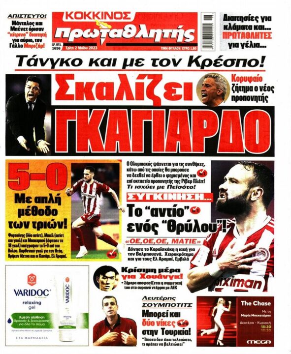 Τα αθλητικά πρωτοσέλιδα της ημέρας(02/05)