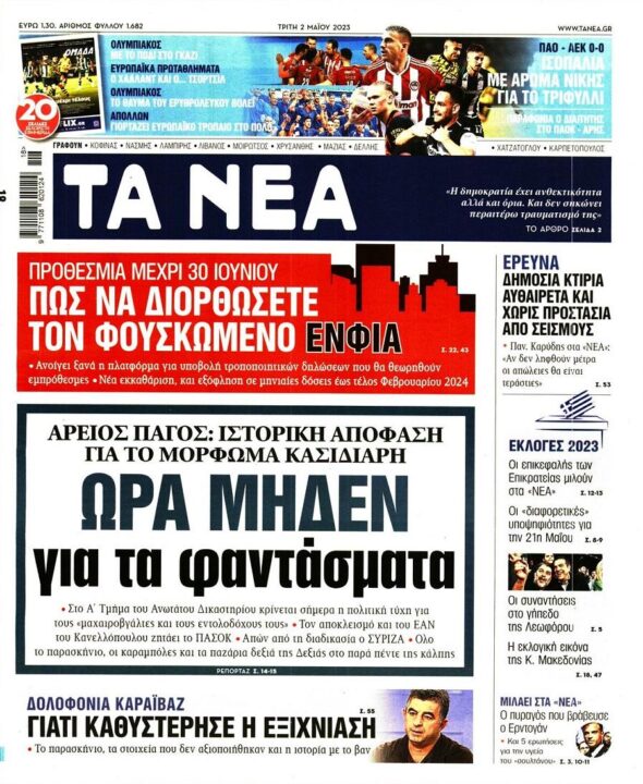 Τα πολιτικά πρωτοσέλιδα της ημέρας(02/05)