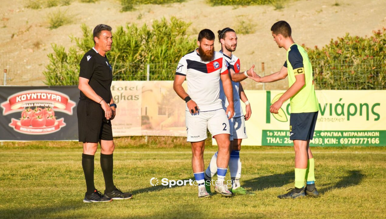 Μια όμορφη εικόνα με τους προπονητές των δύο ομάδων, Λευτέρη Βεστάκη και Βασίλη Τσαρτσίδη