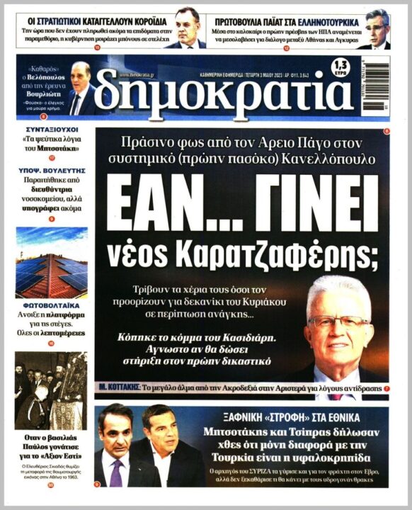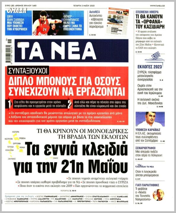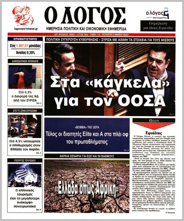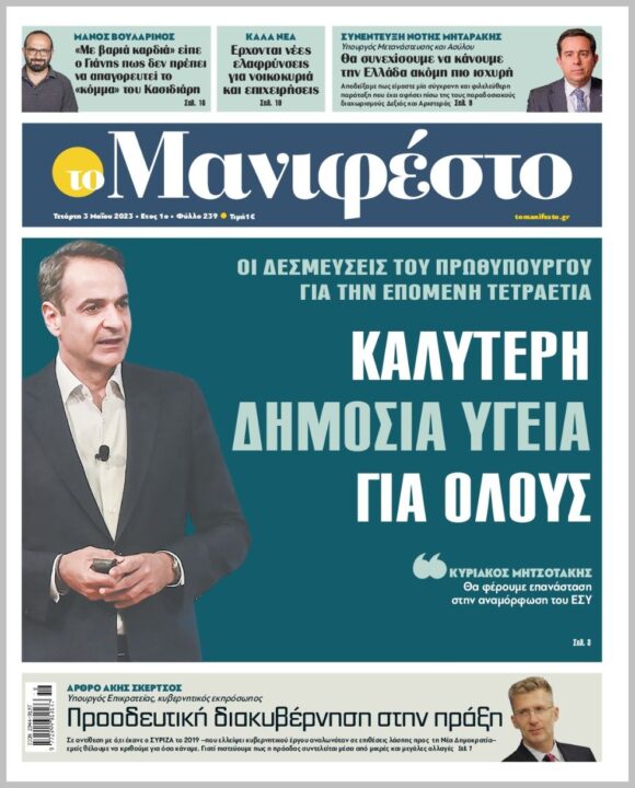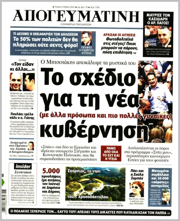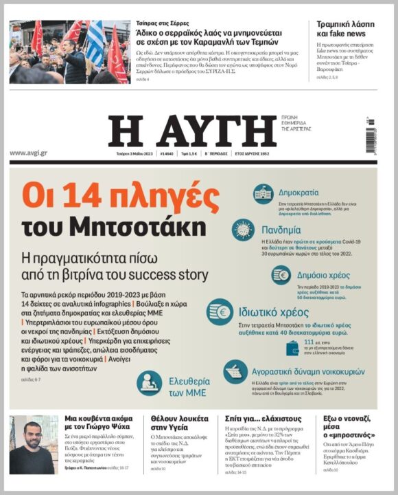 Τα πρωτοσέλιδα των πολιτικών εφημερίδων της Τετάρτης (3/5)