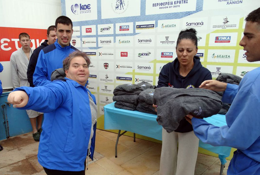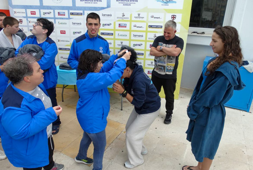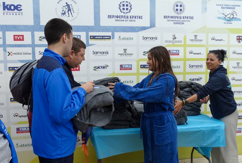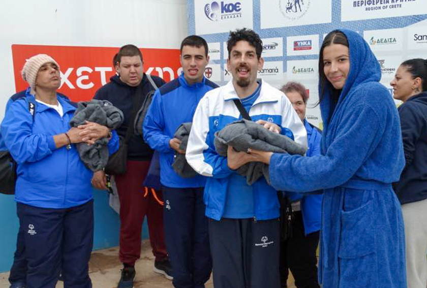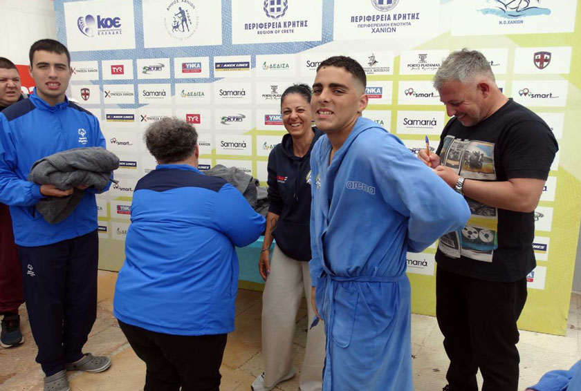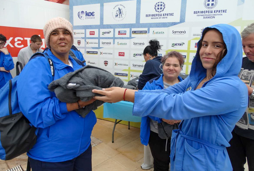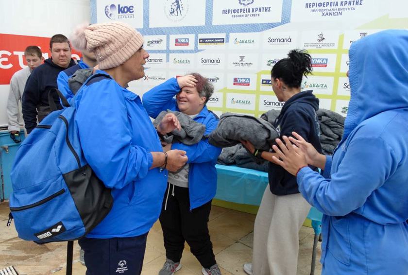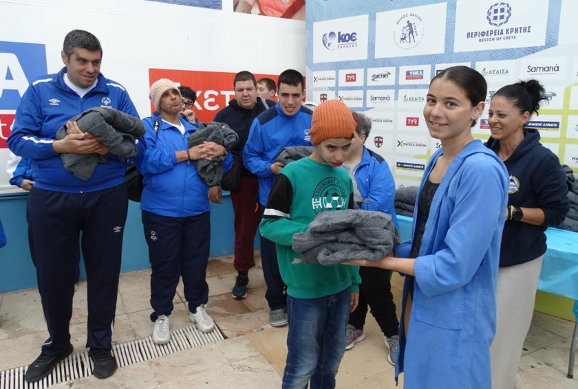 Κάνοντας πράξη την ιδέα τους και δείχνοντας την αλληλεγγύη και την ευαισθησία τους, κολυμβητές και κολυμβήτριες παρέδωσαν στους αθλητές Ειδικής Αθλησης του Ναυτικού Ομίλου μπουρνούζια, τα οποία προηγουμένως είχε προσφέρει η Περιφέρεια Κρήτης.