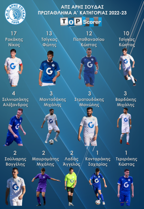 Αναλυτικά σε γράφημα οι σκόρερ του Άρη Σούδας για την σεζόν 2022-23: