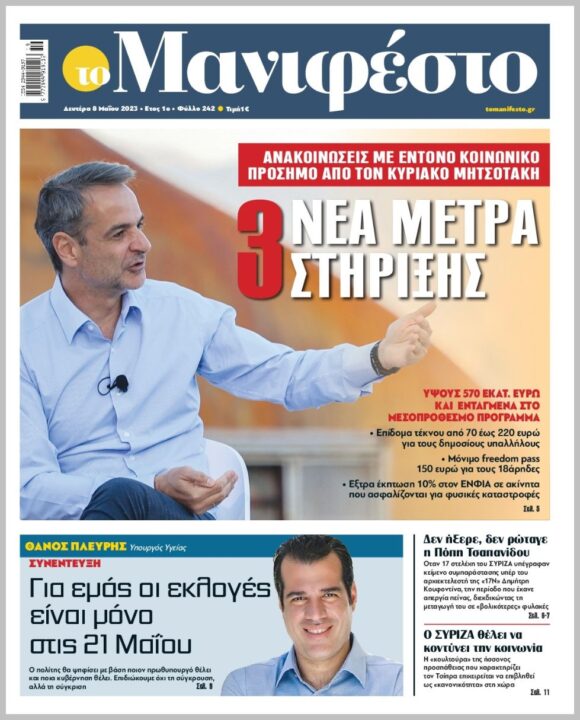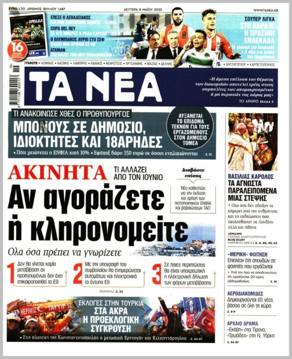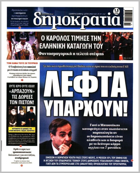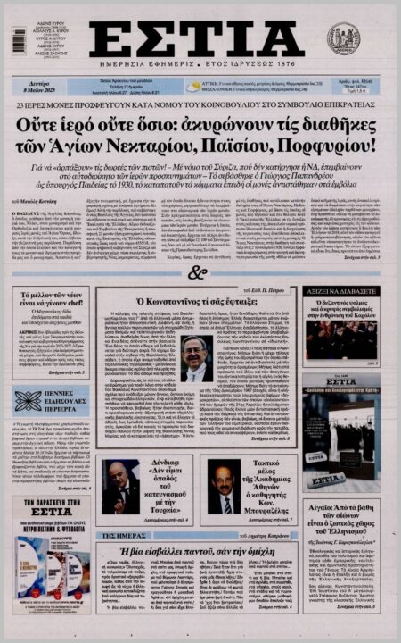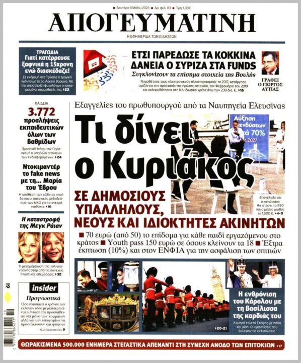 Τα πρωτοσέλιδα των πολιτικών εφημερίδων της Δευτέρας (8/5)