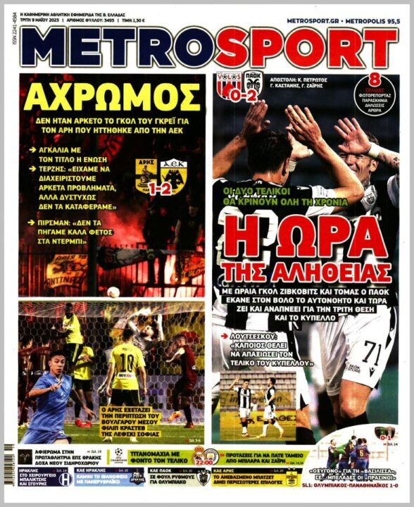 Τα αθλητικά πρωτοσέλιδα της Τρίτης (9/5)